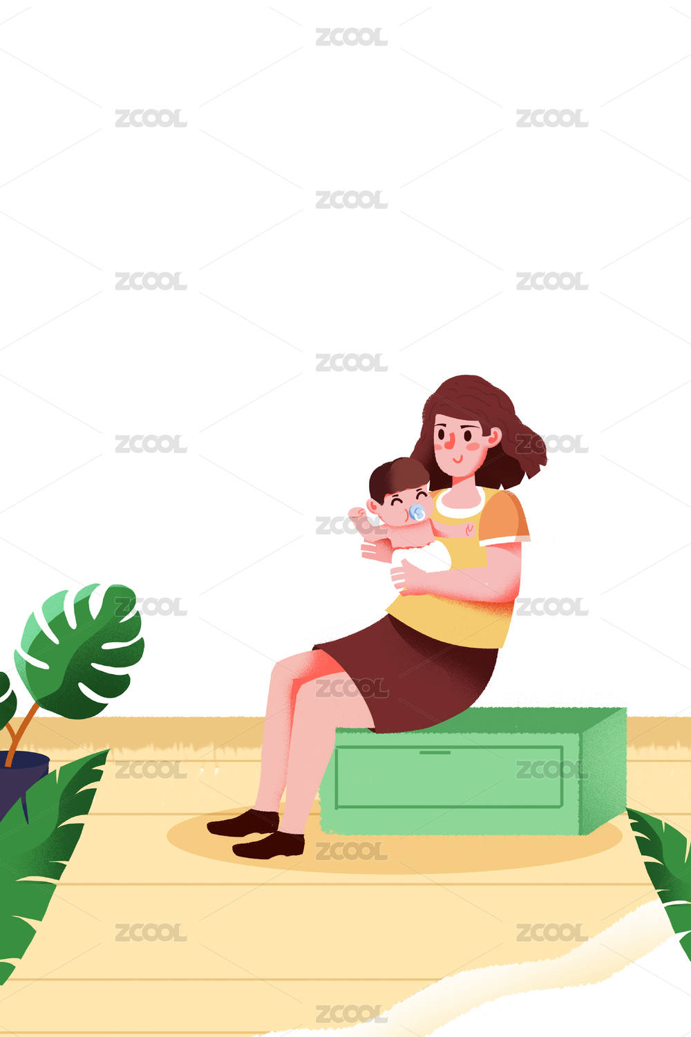 卡通手绘母婴产品妈妈抱着婴儿小孩素材插画