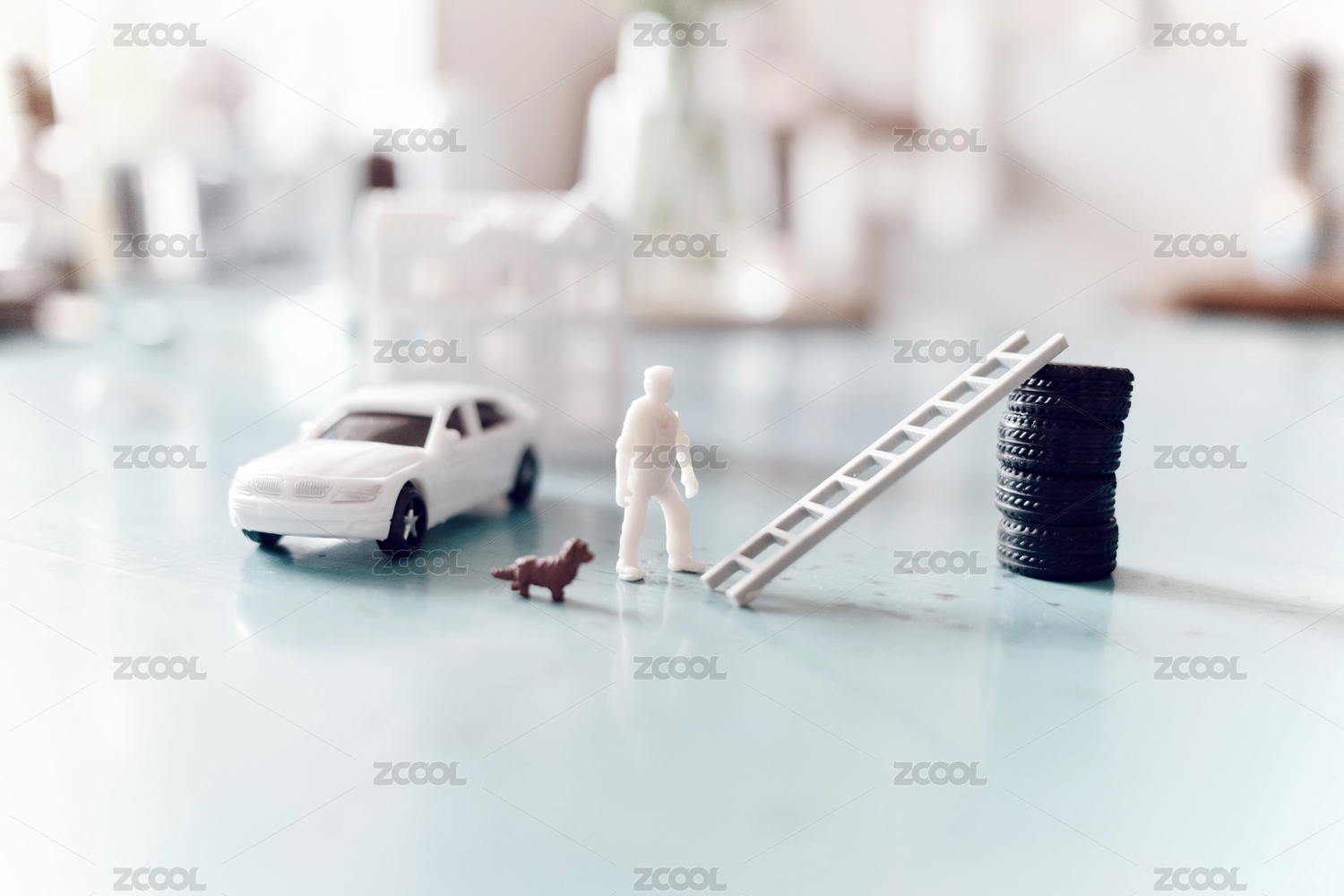 微距人物模型心理沙盘生活场景汽车维修宠物狗互动