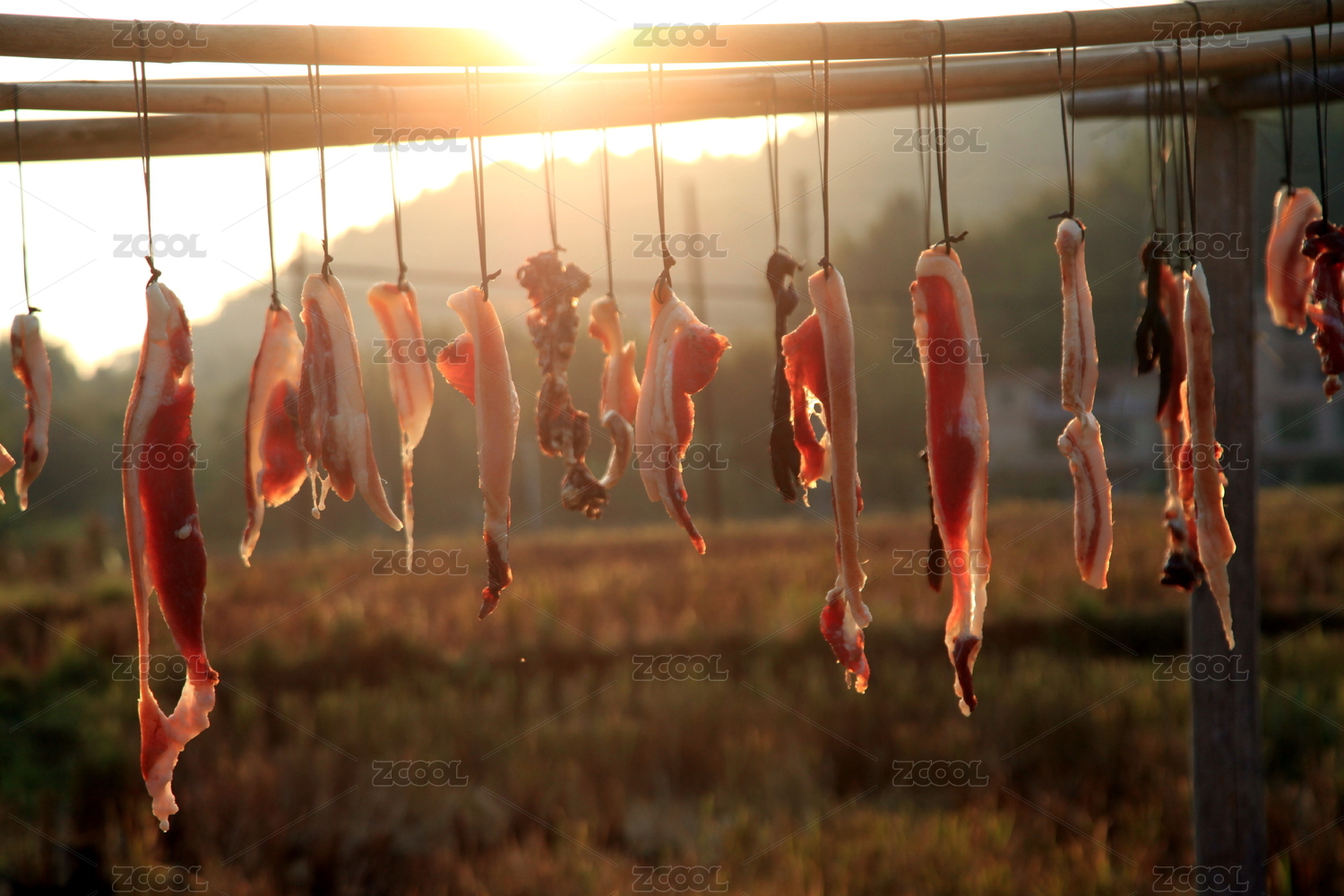 江南农家晒年货咸肉腌肉