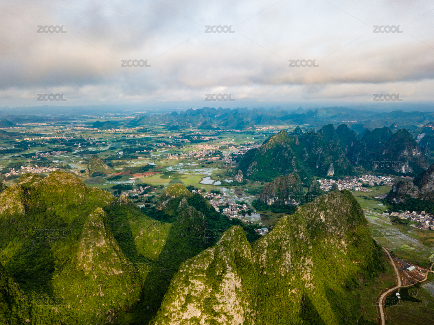 蓝天白云下的广西桂林山脉与村庄乡村振兴