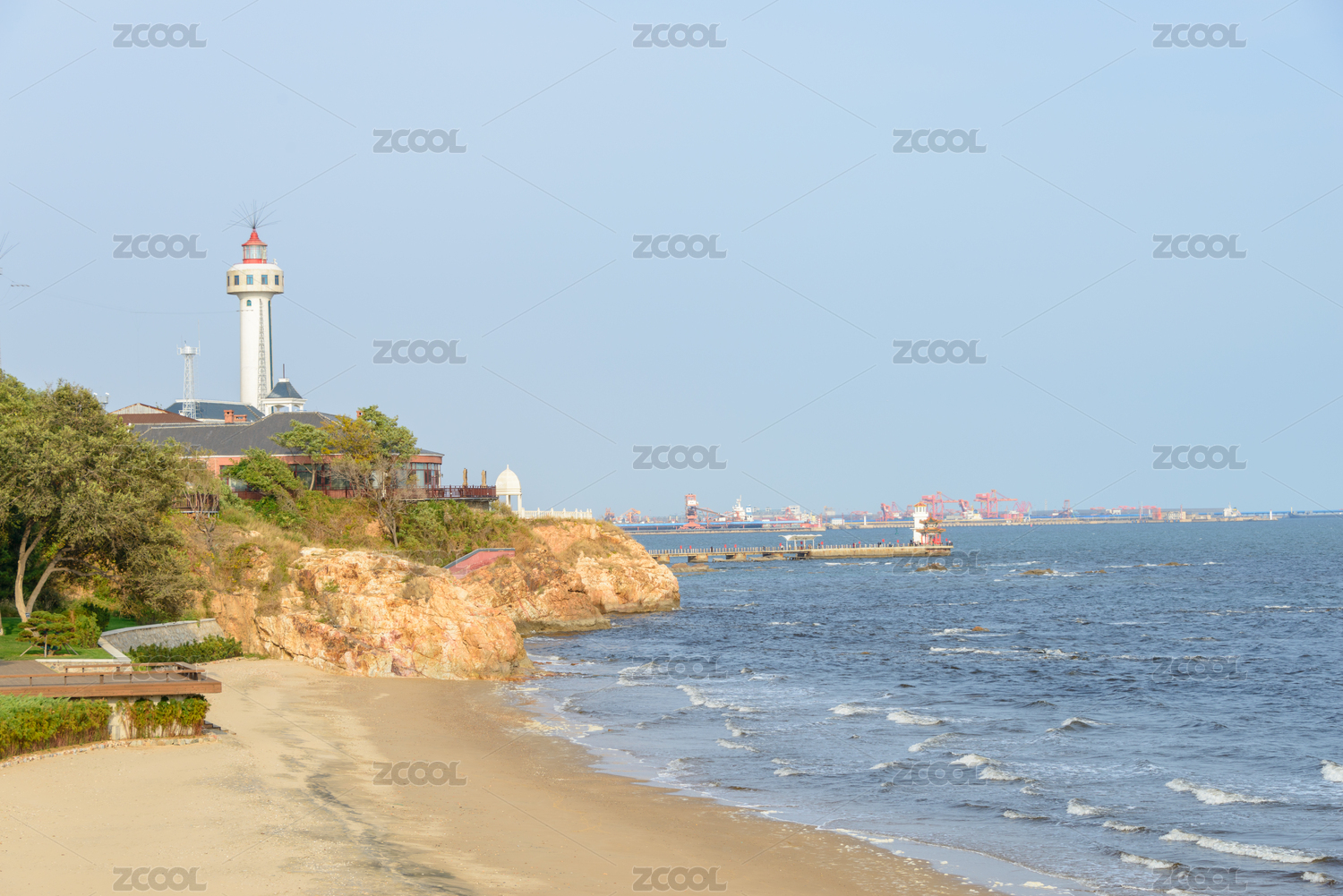 中国山东青岛奥帆中心的情人坝灯塔航拍