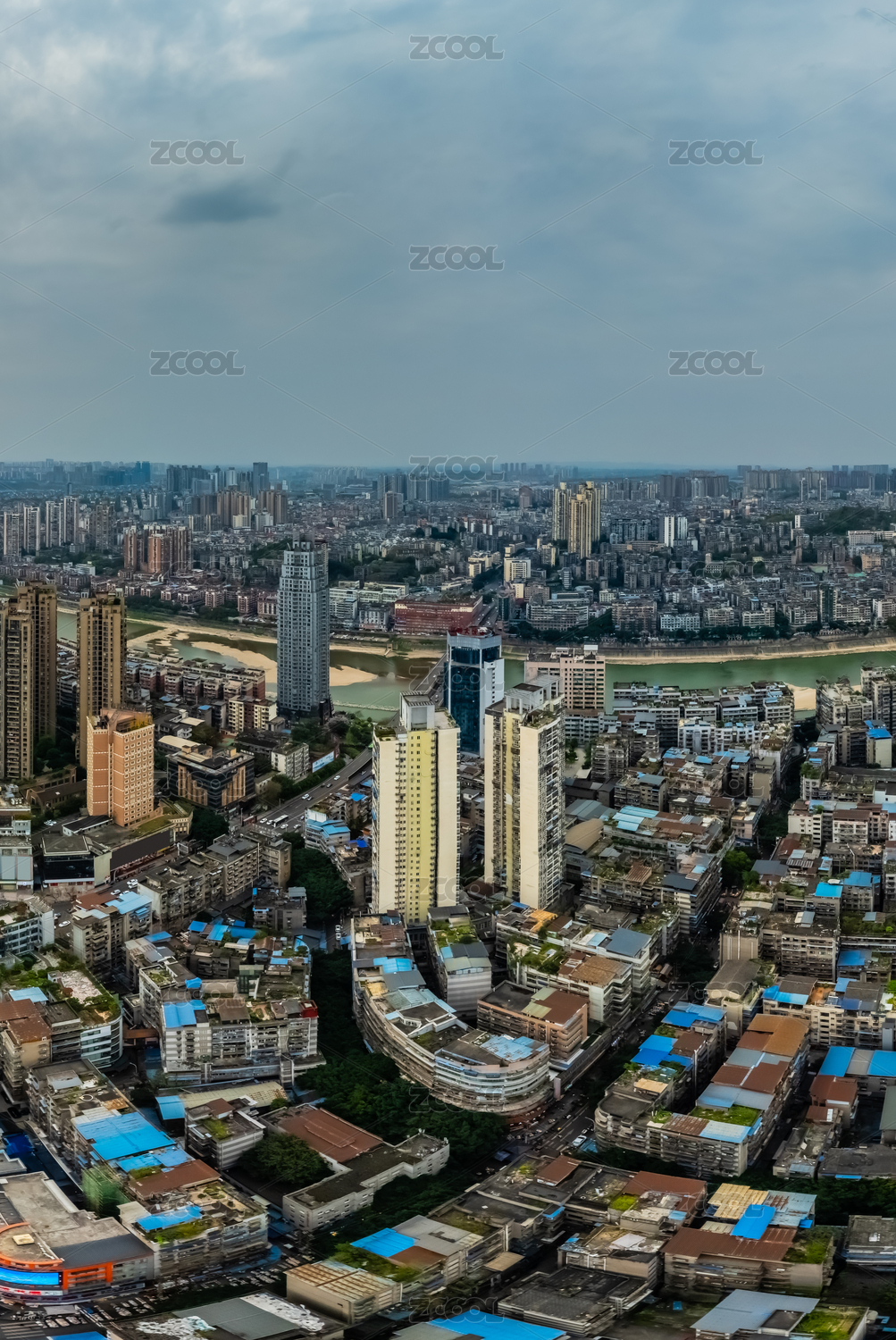 中国四川省遂宁市涪江西老城区高楼大厦建筑