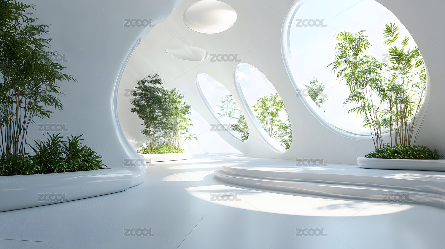 白色现代建筑室内空间