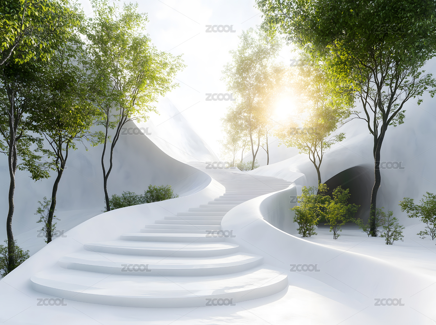 极简白色现代室内楼梯展览画廊场景