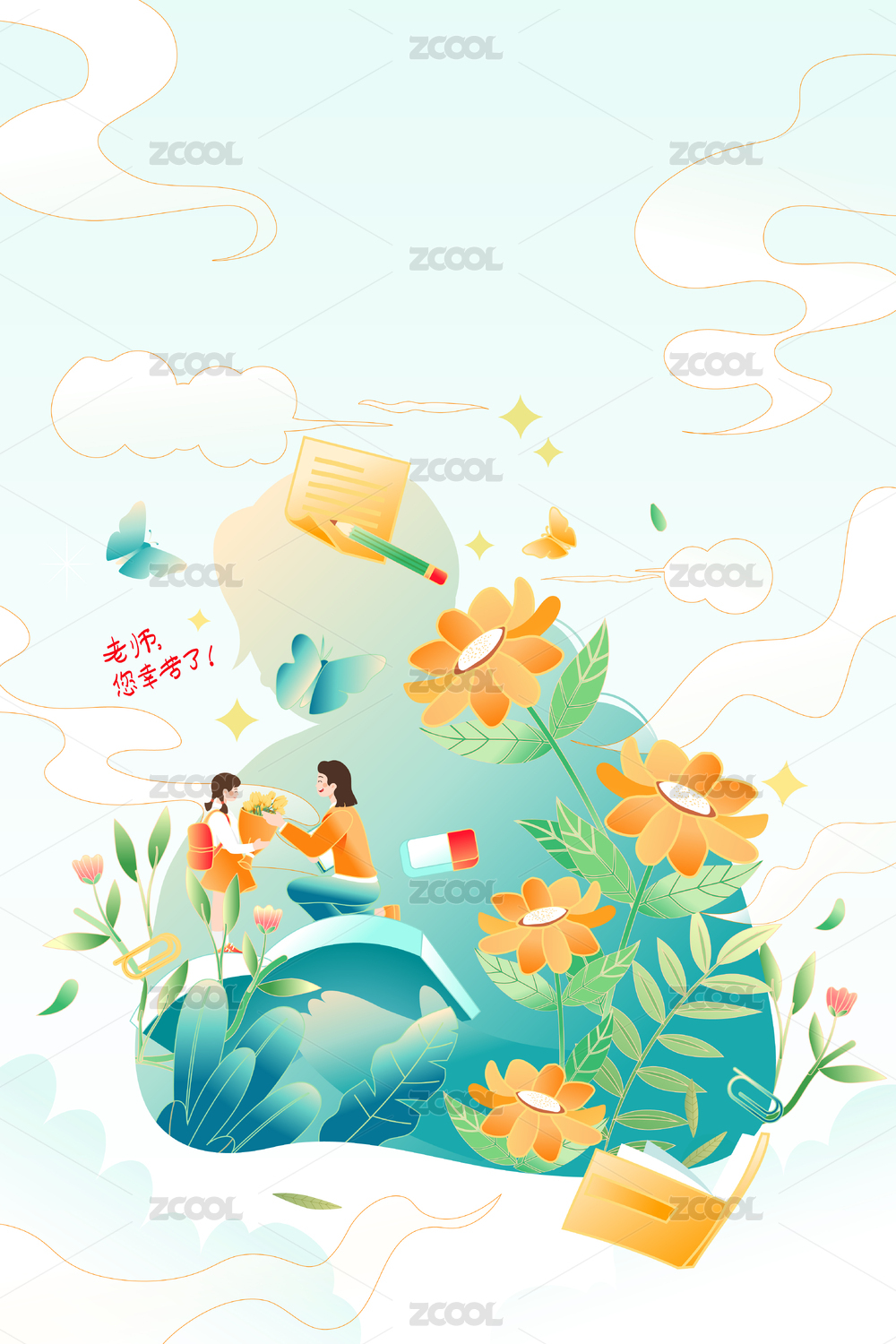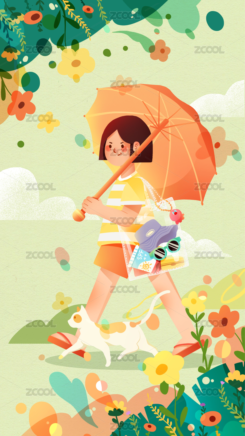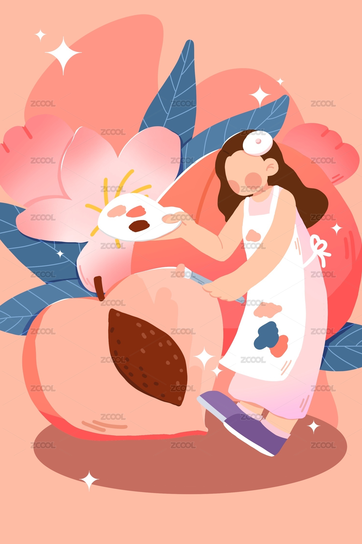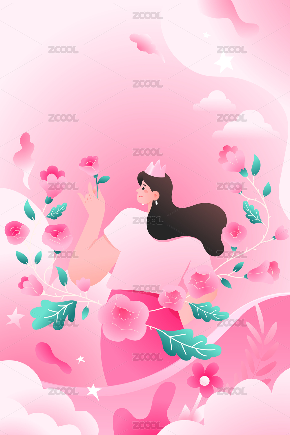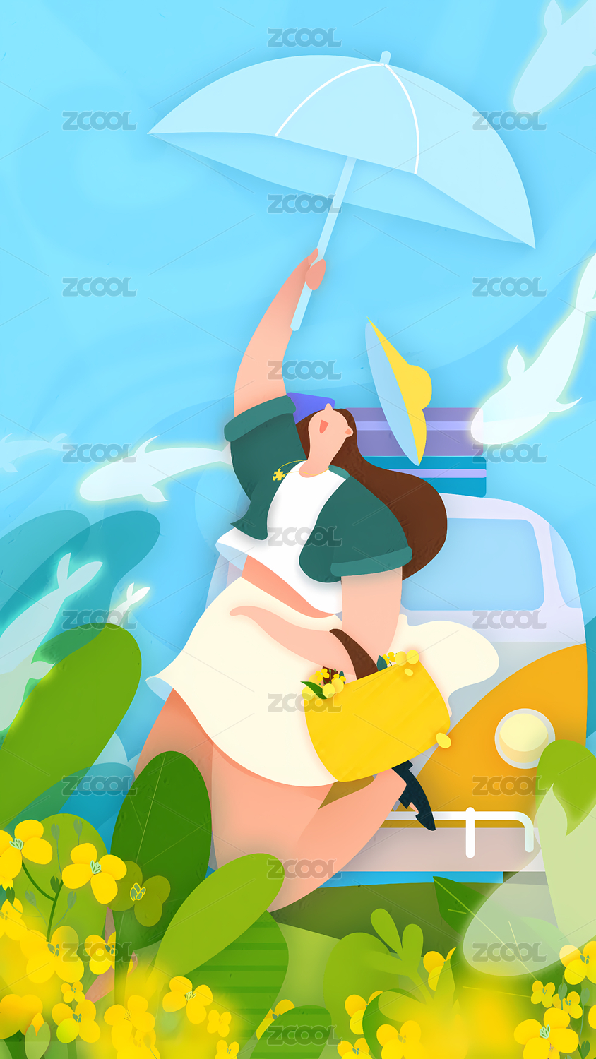 可爱女孩坐在花上手捧星星春天夏天季节清新