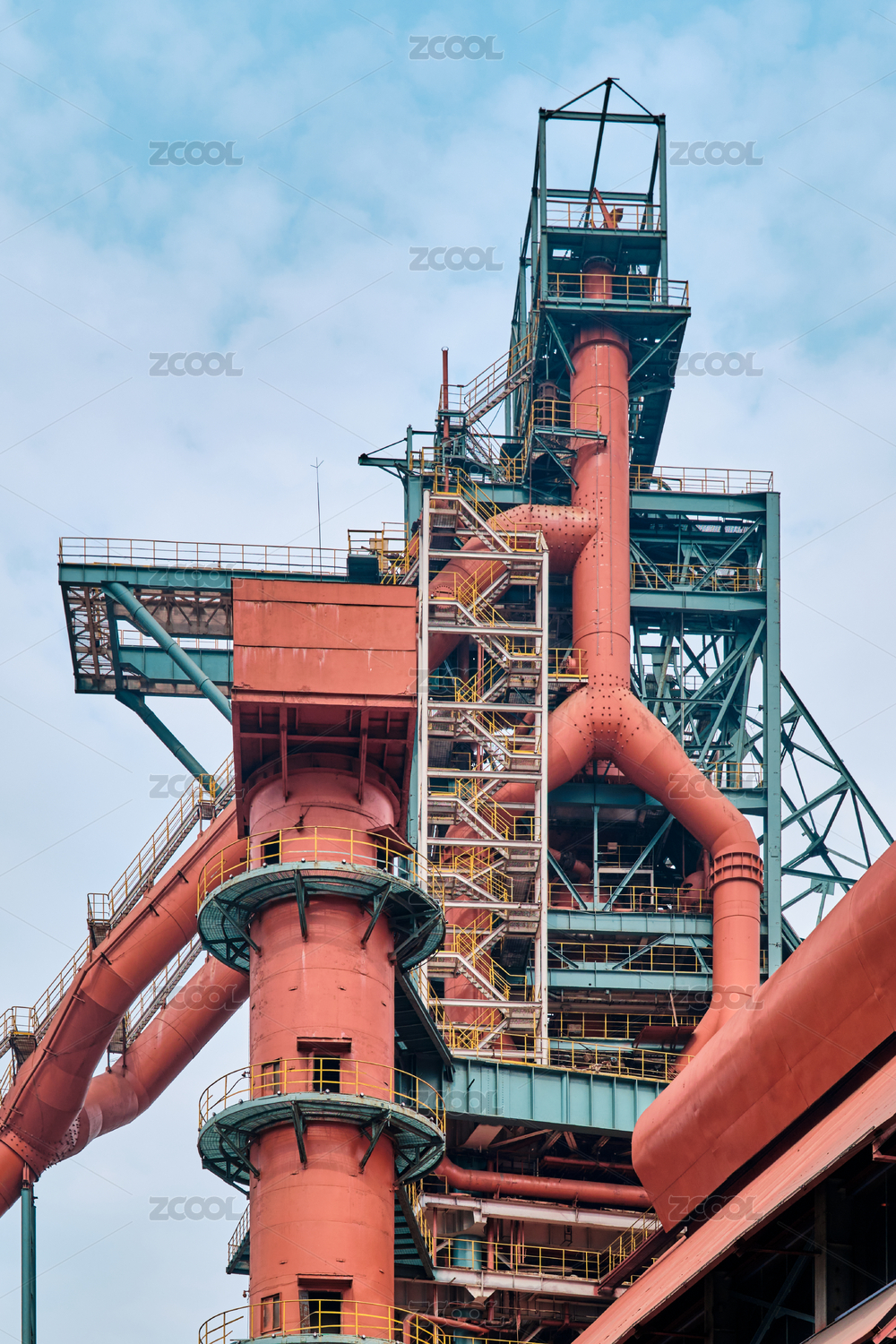 蓝天下的钢铁工厂锅炉