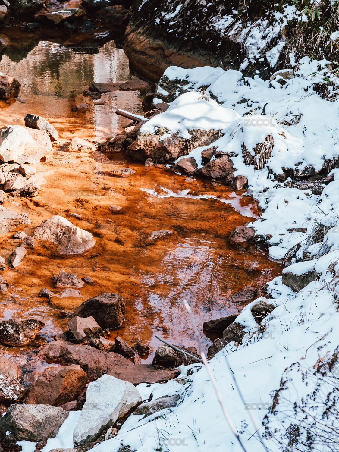 中国新疆可可托海大峡谷中的溪流与瀑布