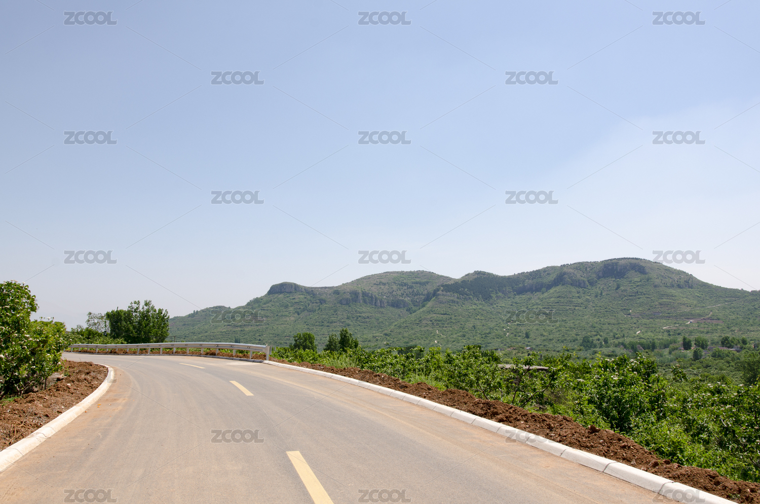 山区笔直的沥青公路在蓝天白云下伸向远方