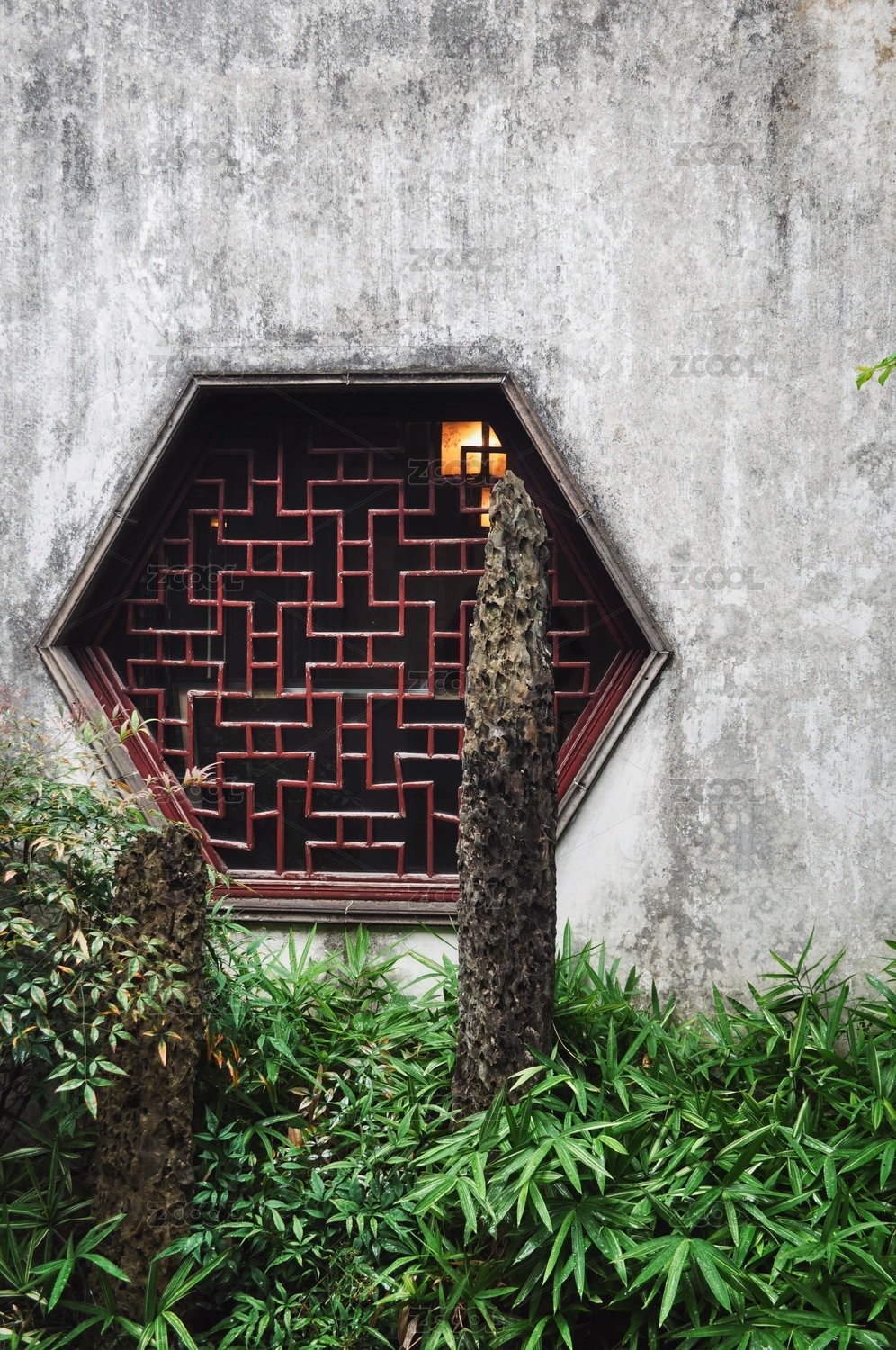 上海市朱家角古镇和心园盆景石窗