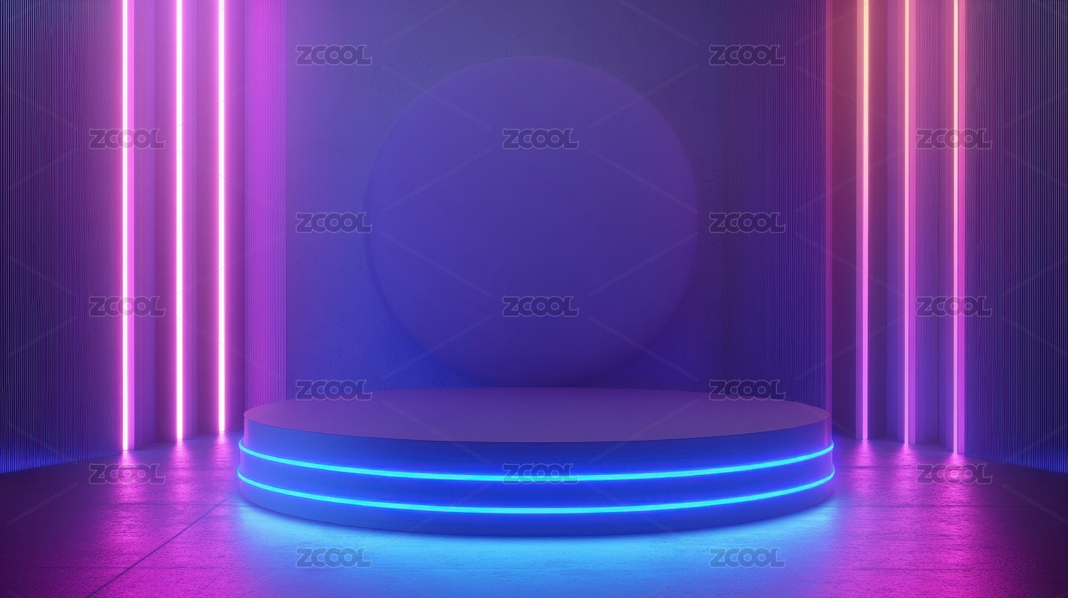 蓝色霓虹圆形平台