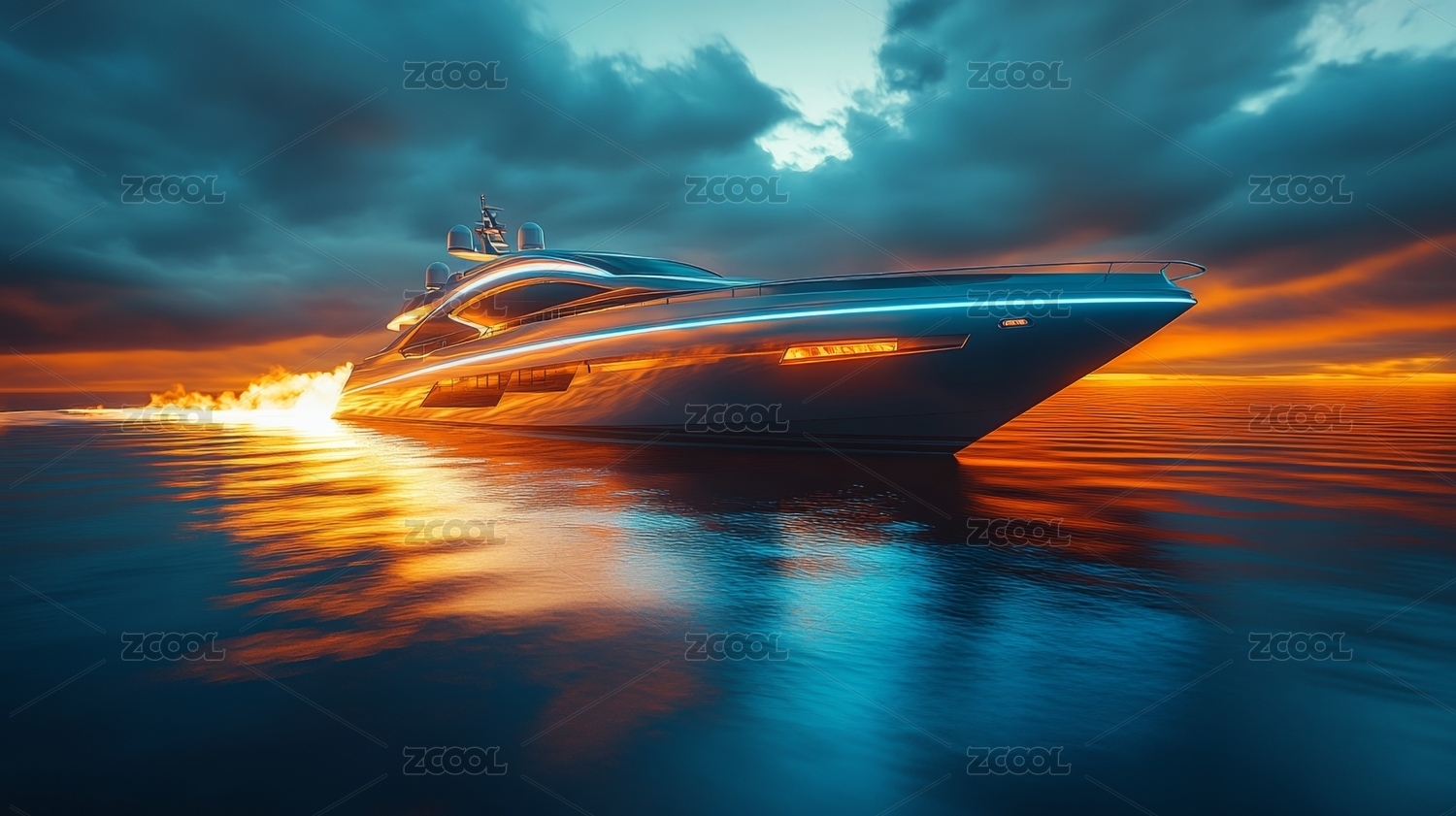 炫酷游艇夜景