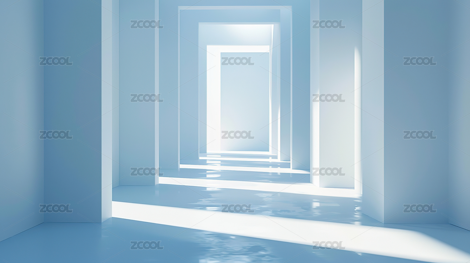 白色走廊透视光影