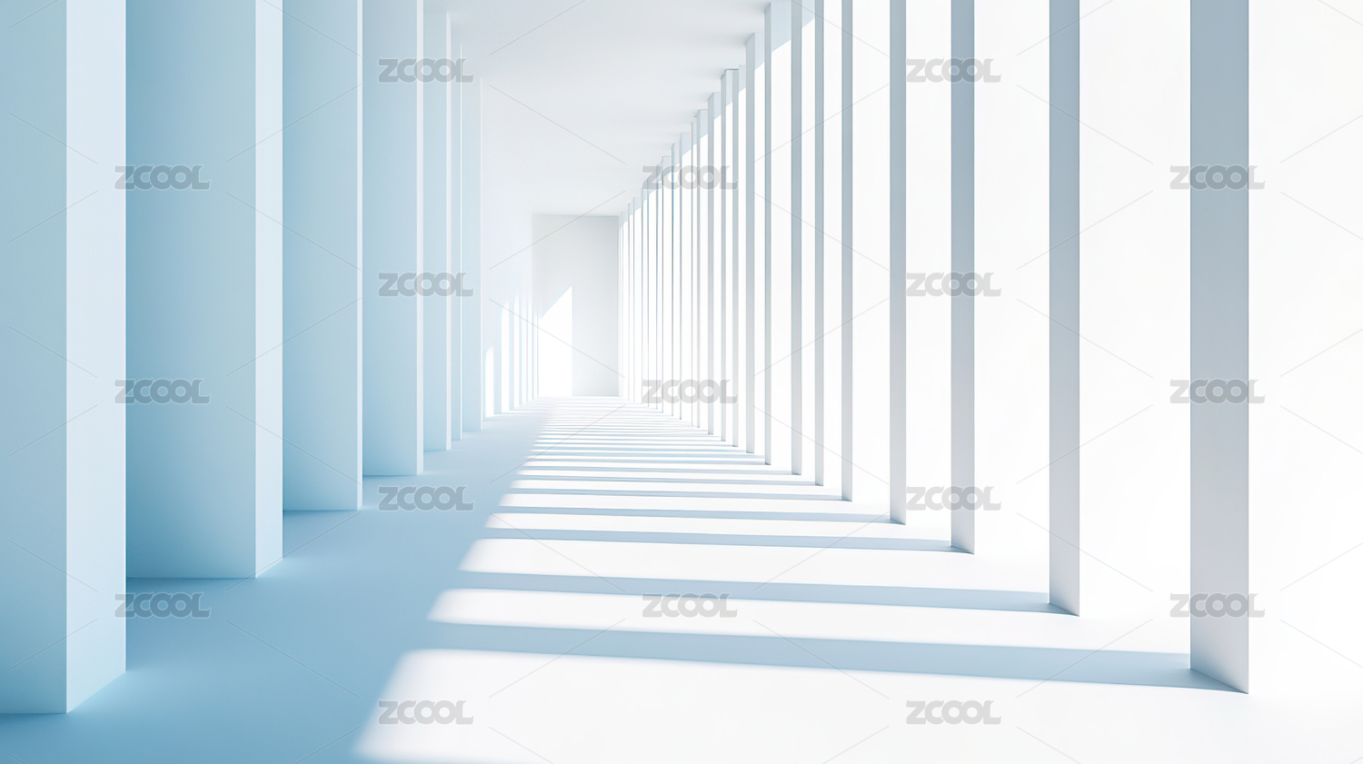 白色走廊透视光影