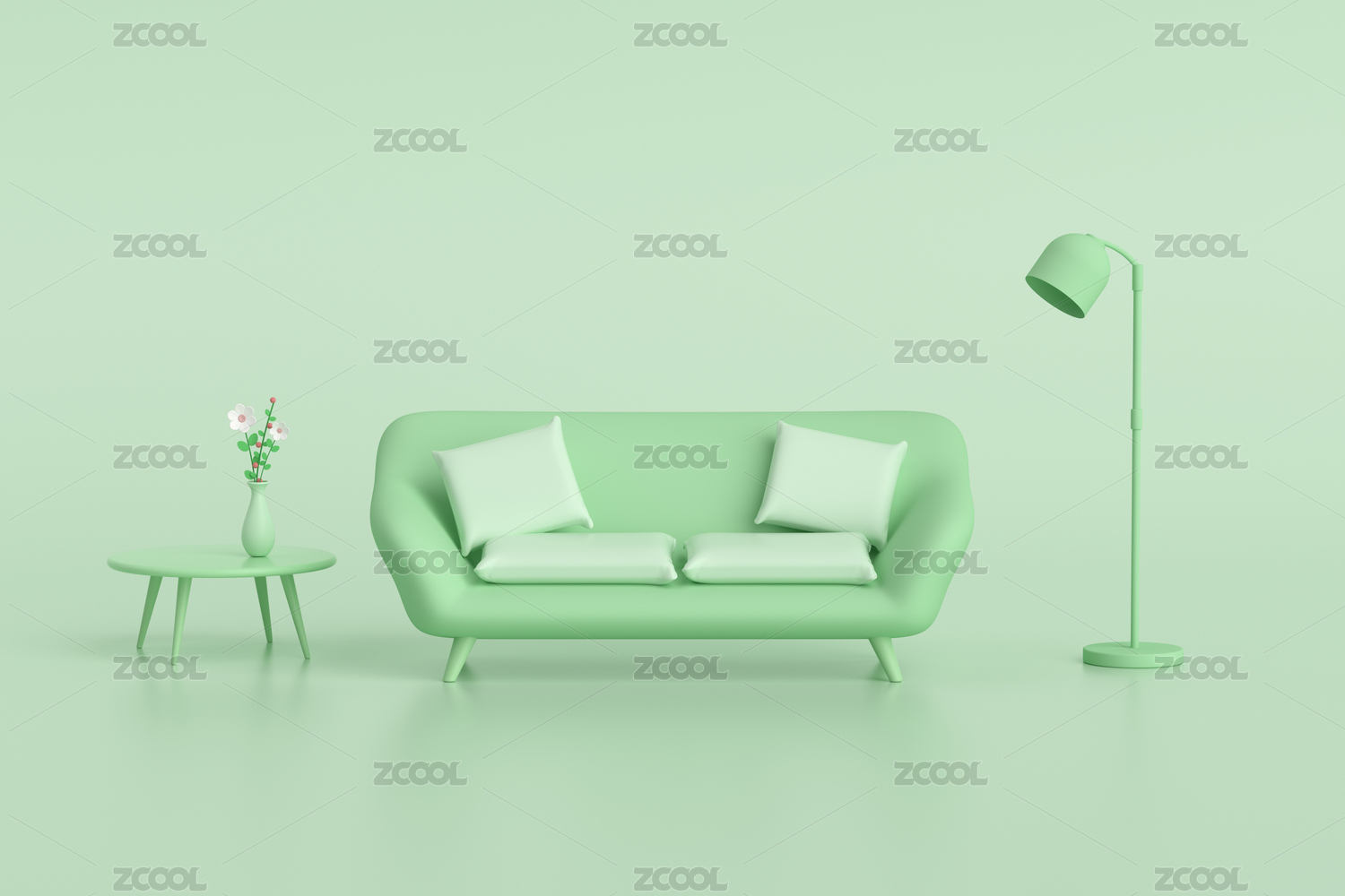 简约绿色调家居三维立体场景