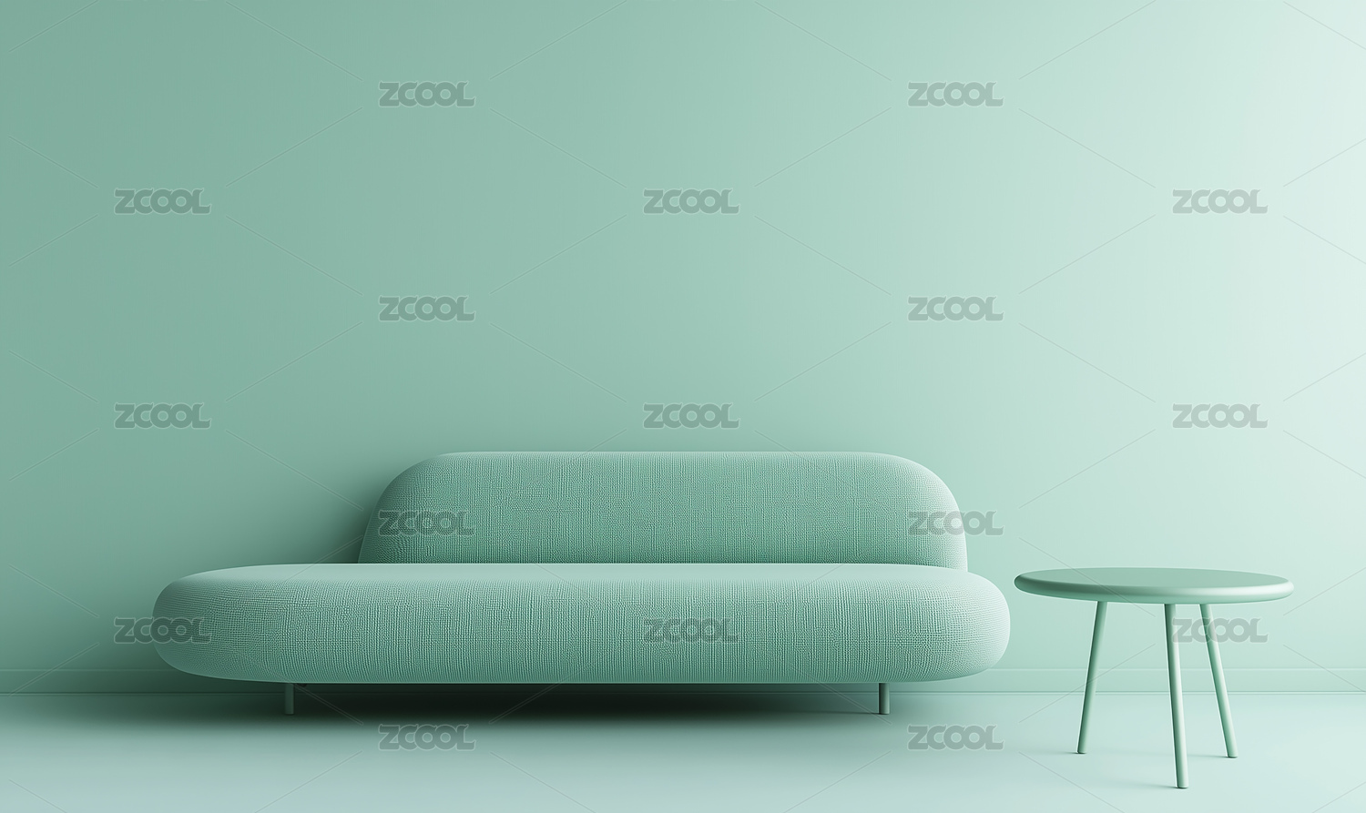 薄荷绿墙沙发绿植营造清新室内场景