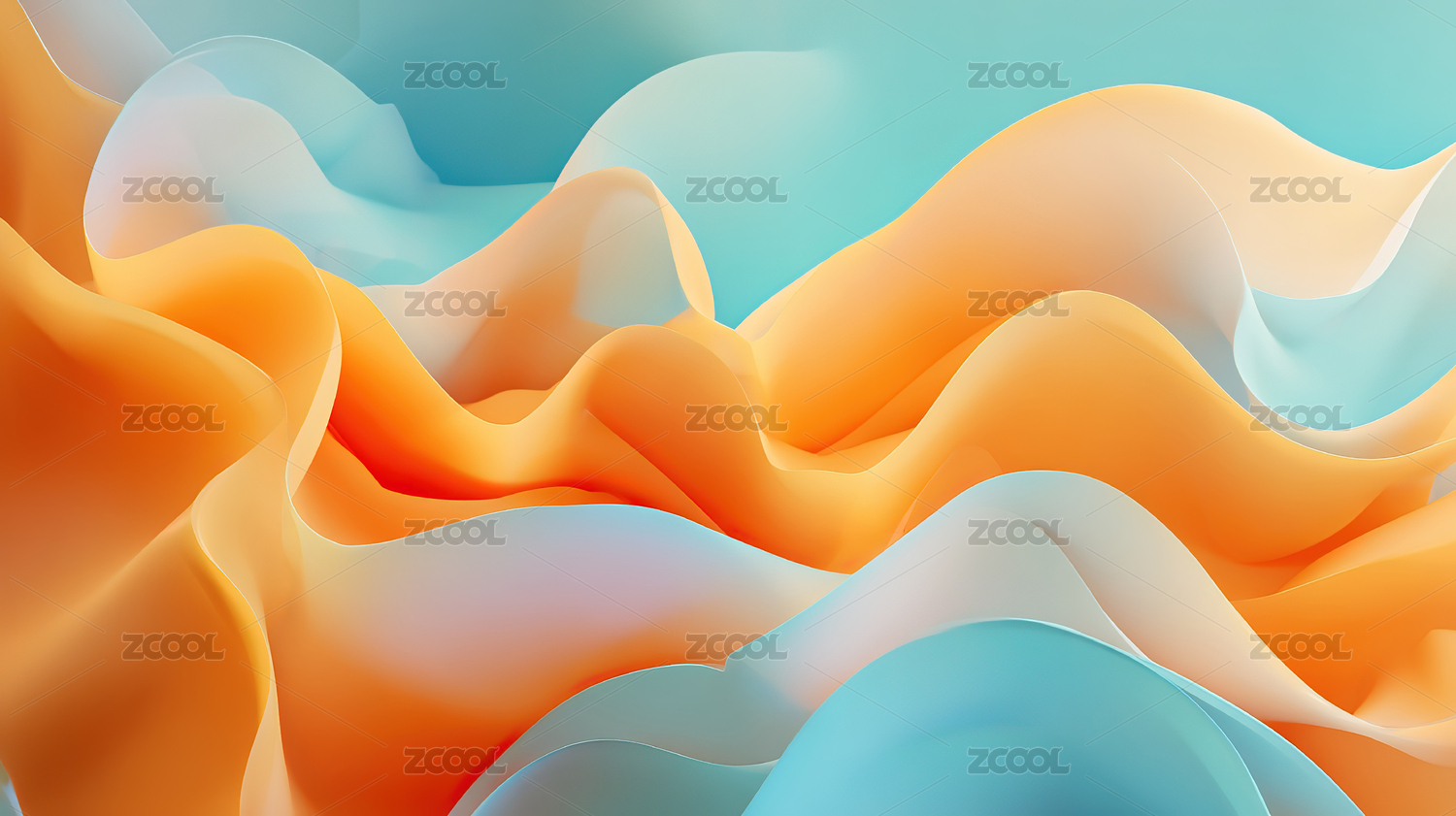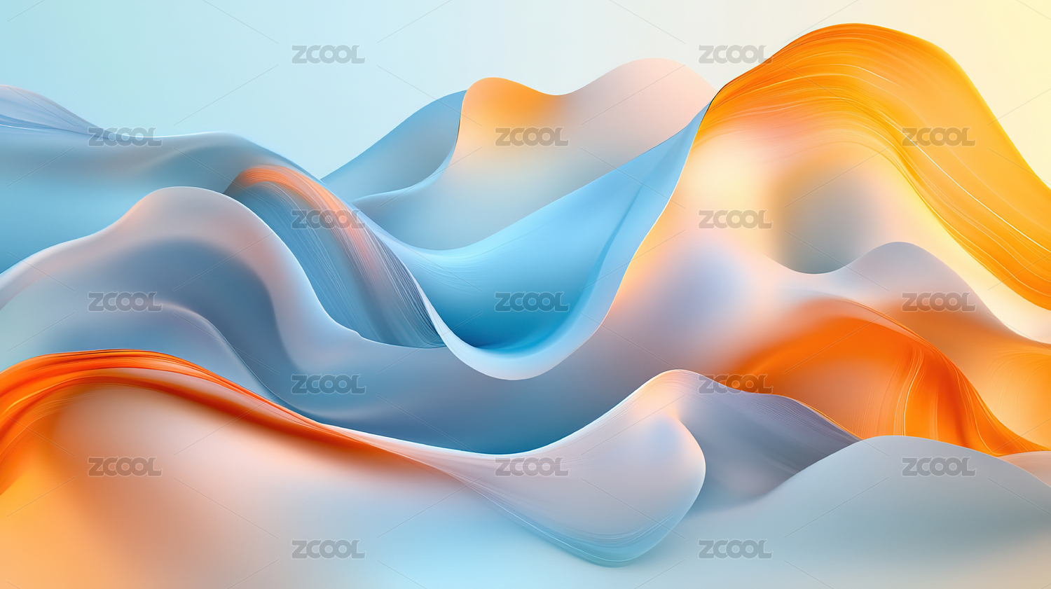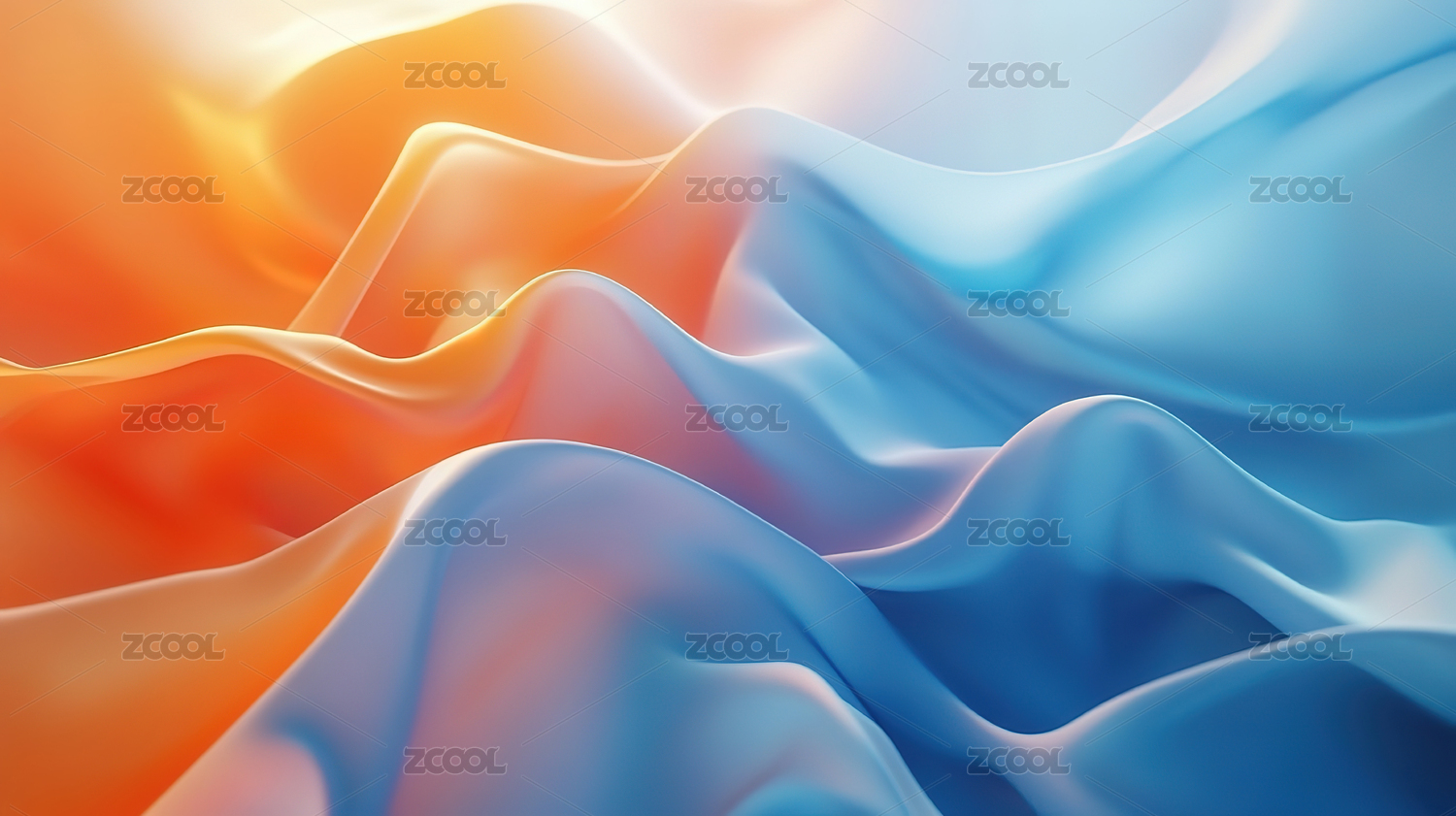 蓝色橙色交织抽象流动山脉