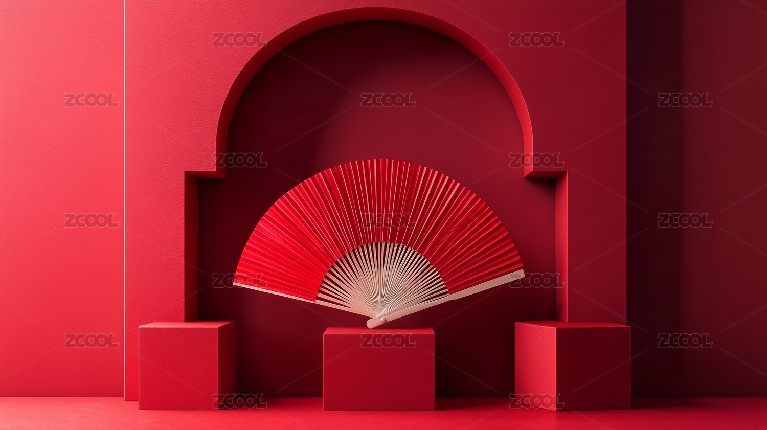 红色背景下的红色折扇