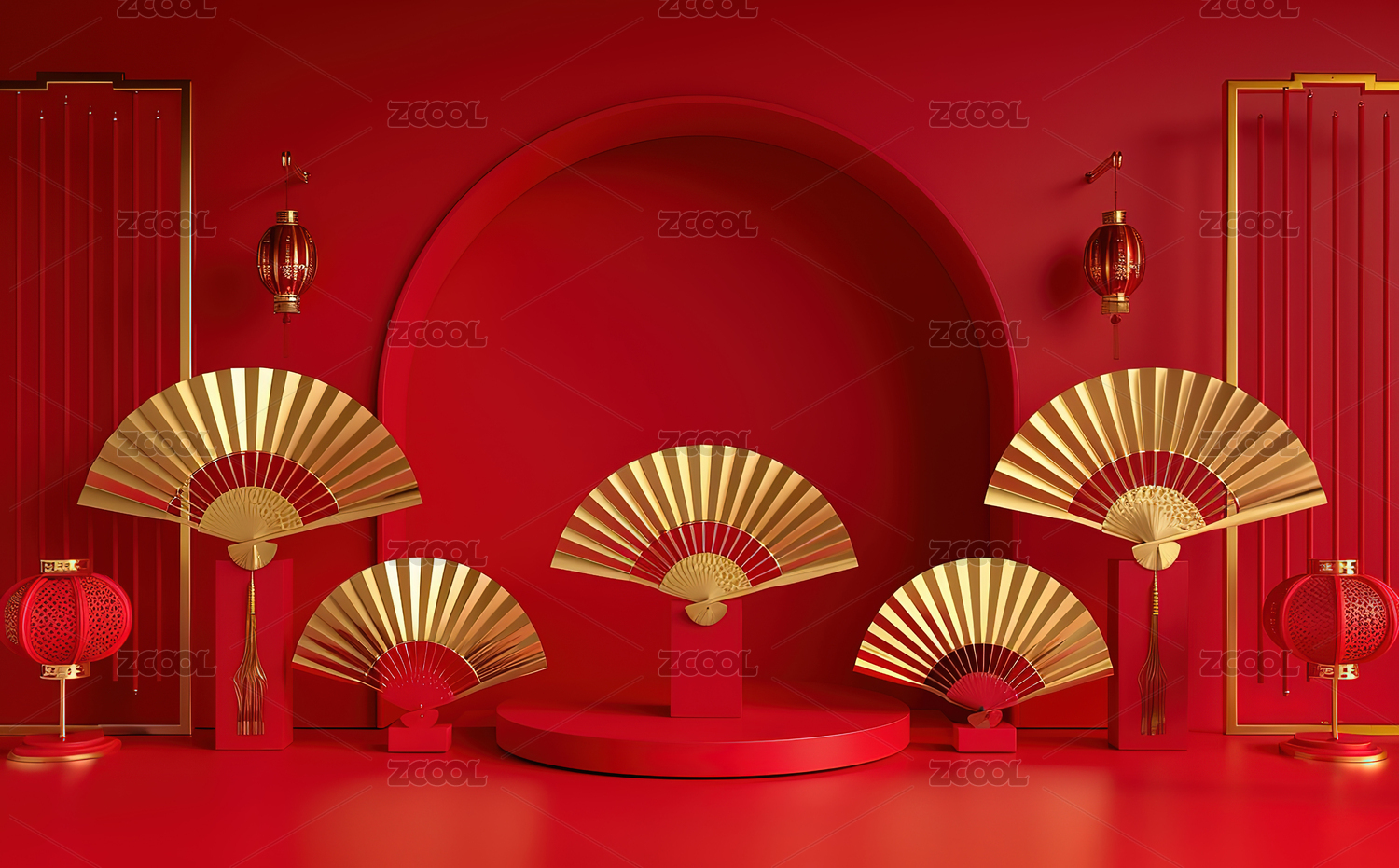 3D春节红色扇子电商产品展台