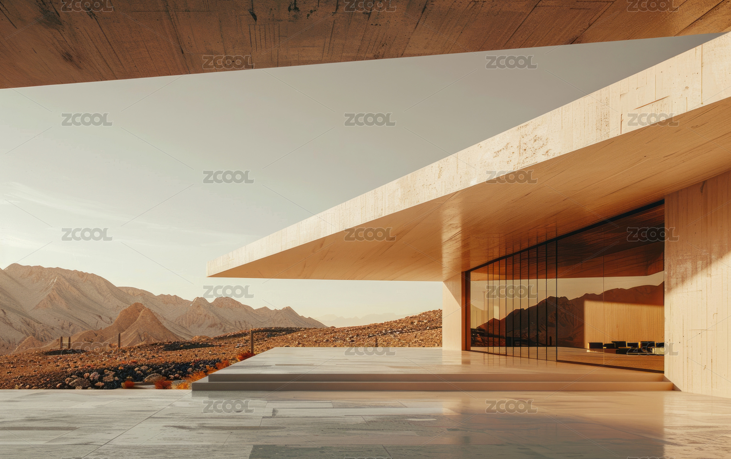 极简现代建筑与山景泳池