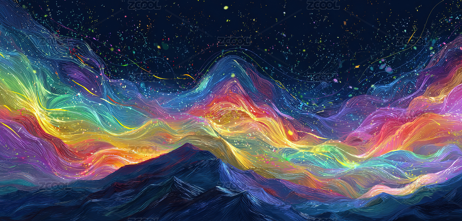 梦幻星空下的彩色山峦