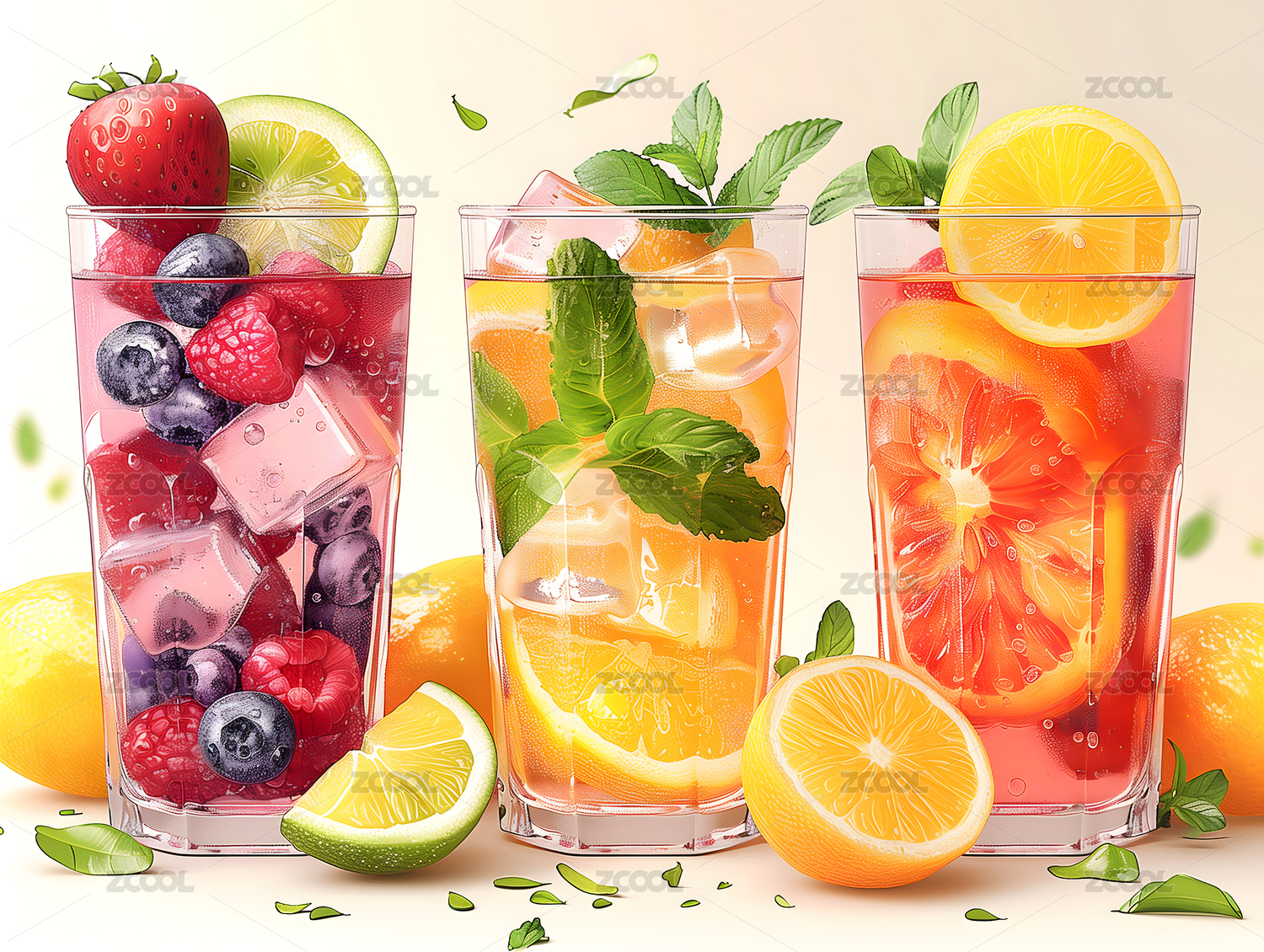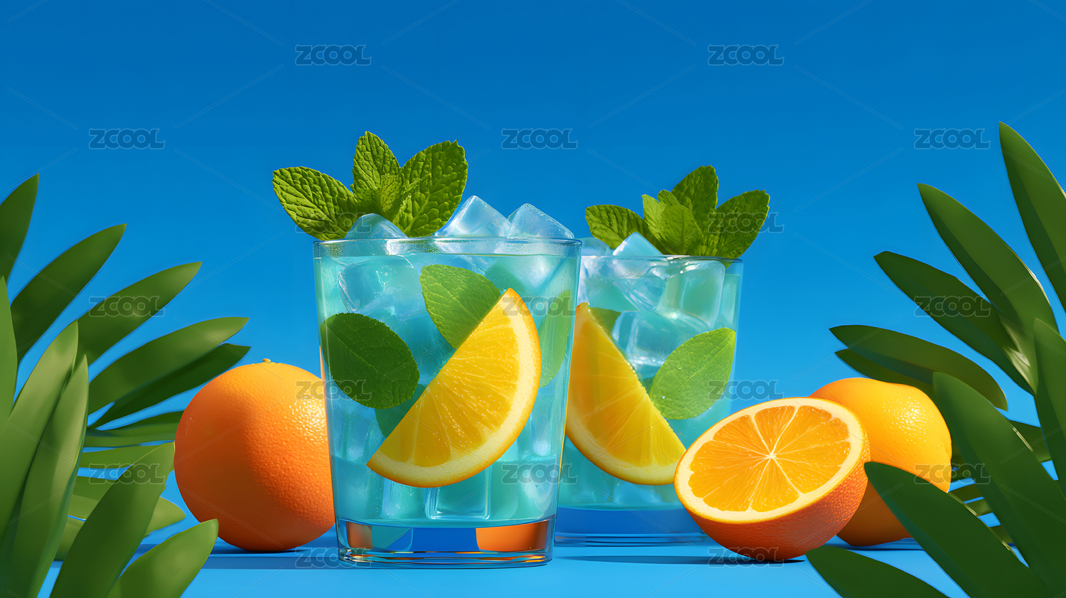插画,冷饮,清新,饮料,水果,饮食,冰,柠檬