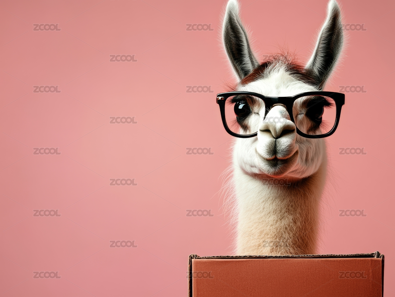 一只戴着眼镜系着彩色围巾时尚骆驼