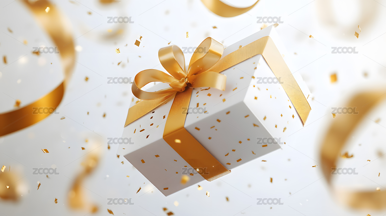 金色礼盒与飘落的花瓣
