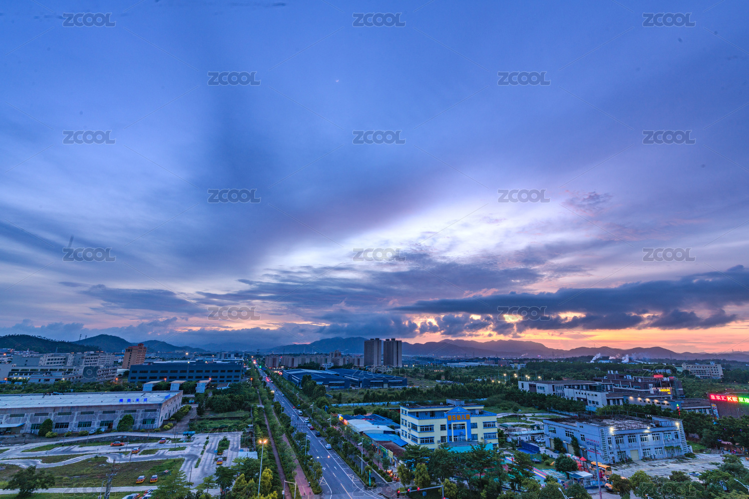 积云天气丁达尔光线福建龙岩城市建筑全景
