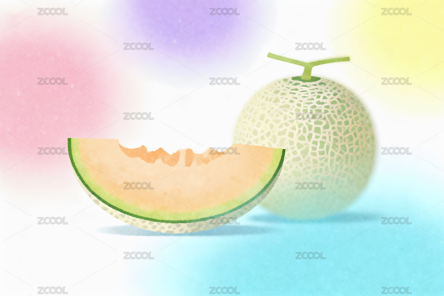 有机,营养,健康,绿色,新鲜,时令,哈密瓜,水果,简约,插图