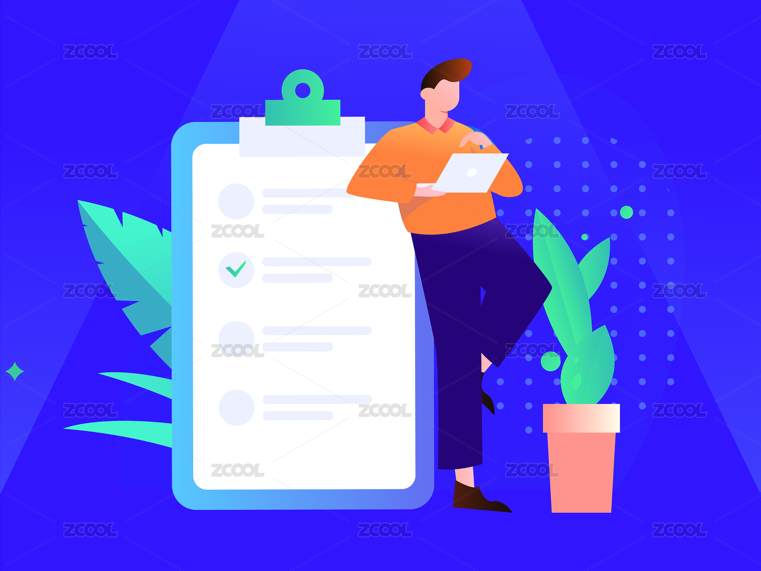 邀请问卷调查, 手绘扁平人物场景创意概念插画