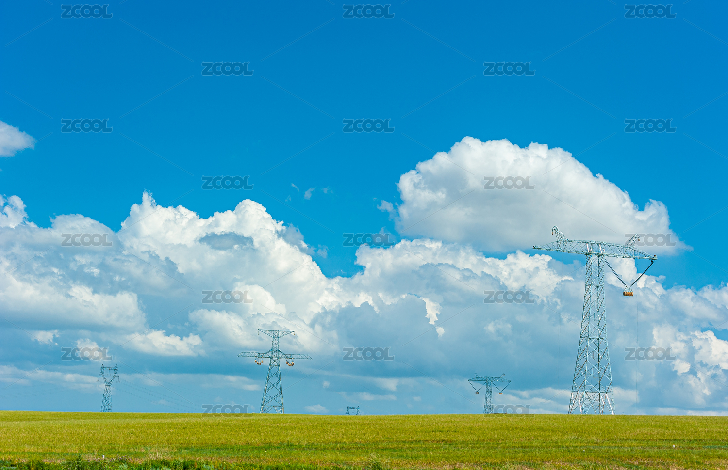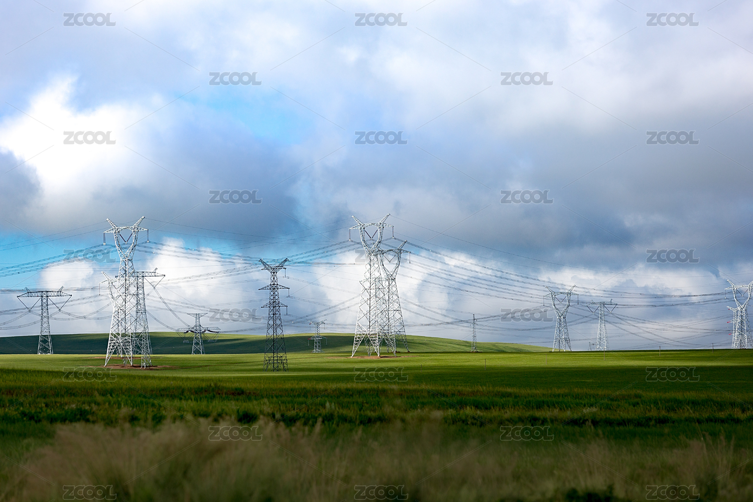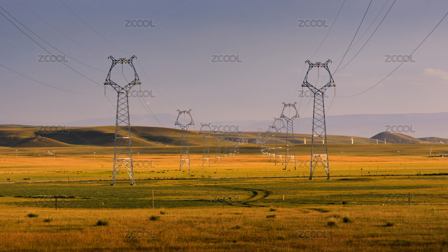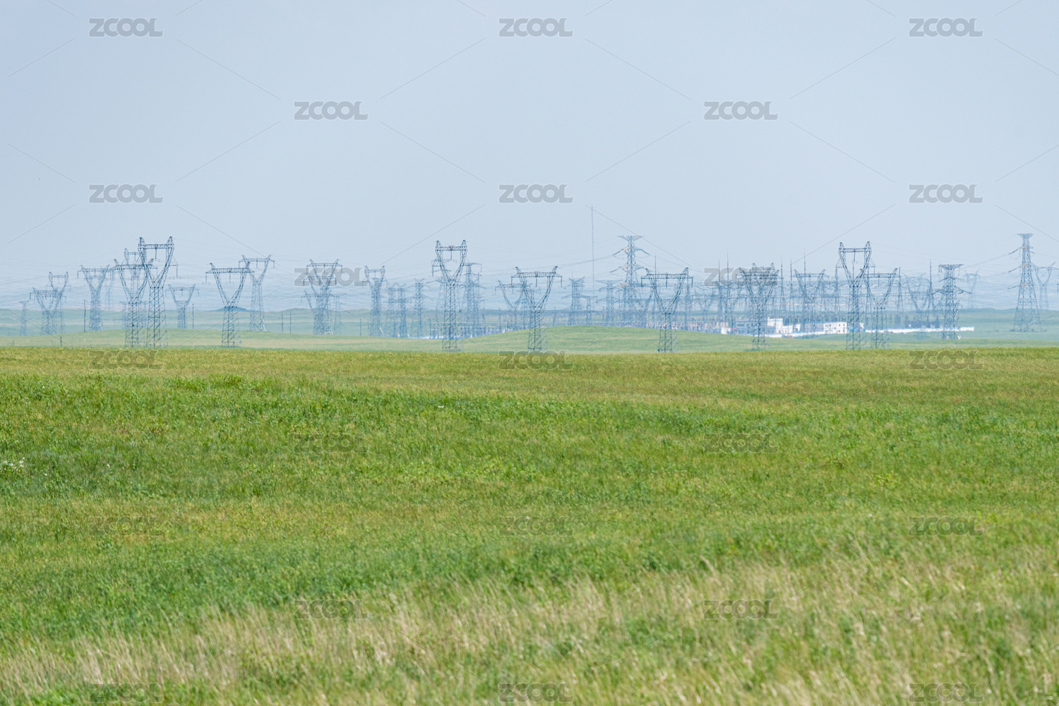 中国内蒙古锡林郭勒大草原上的电网铁塔