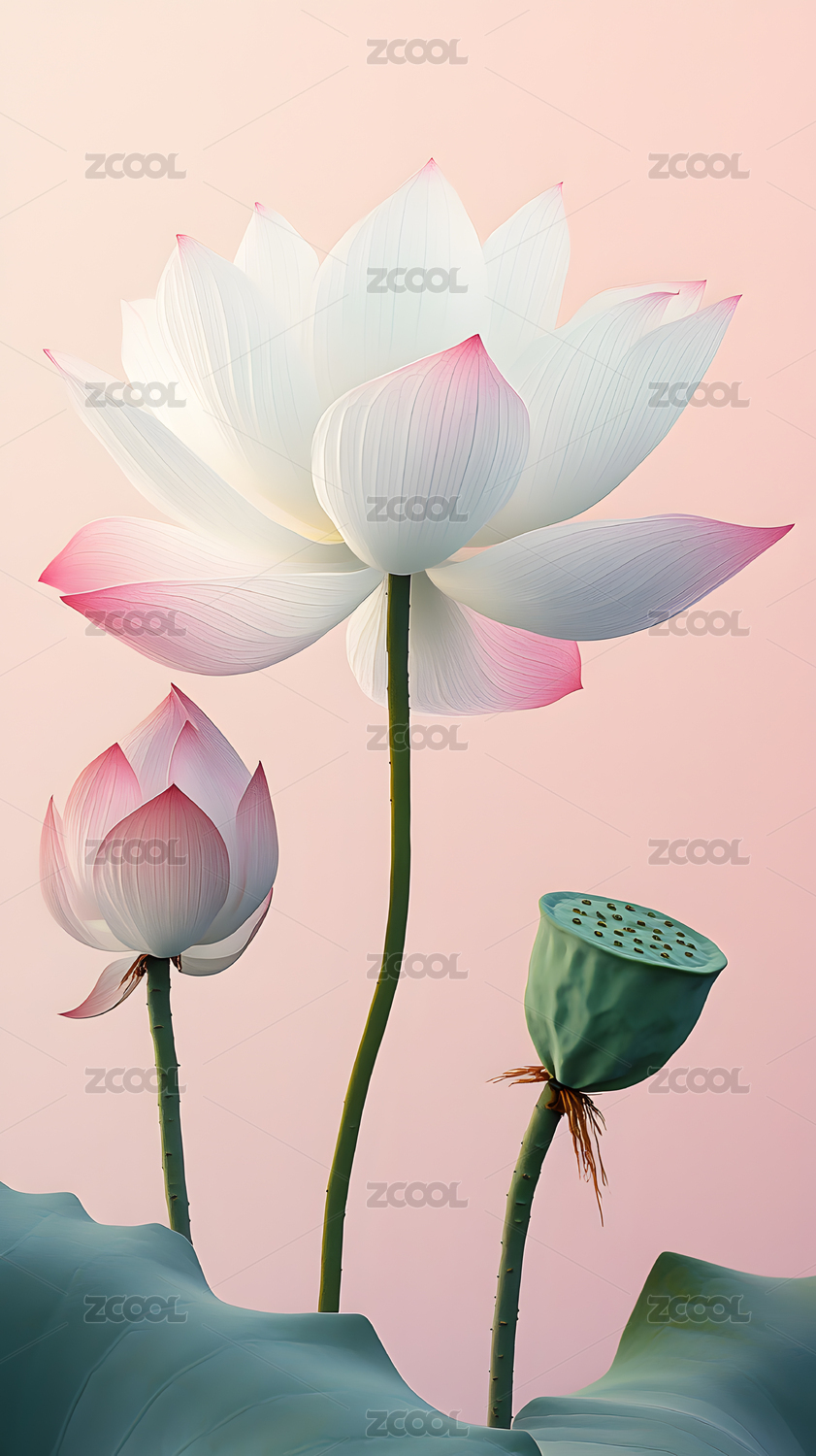 粉色背景中荷花盛开场景