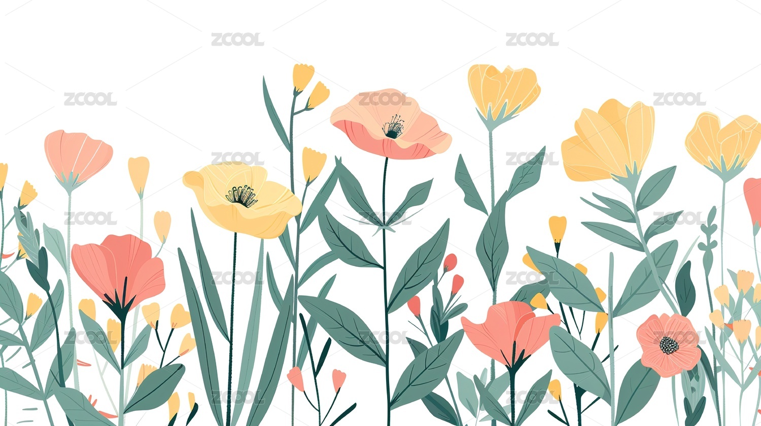 手绘卡通植物花卉