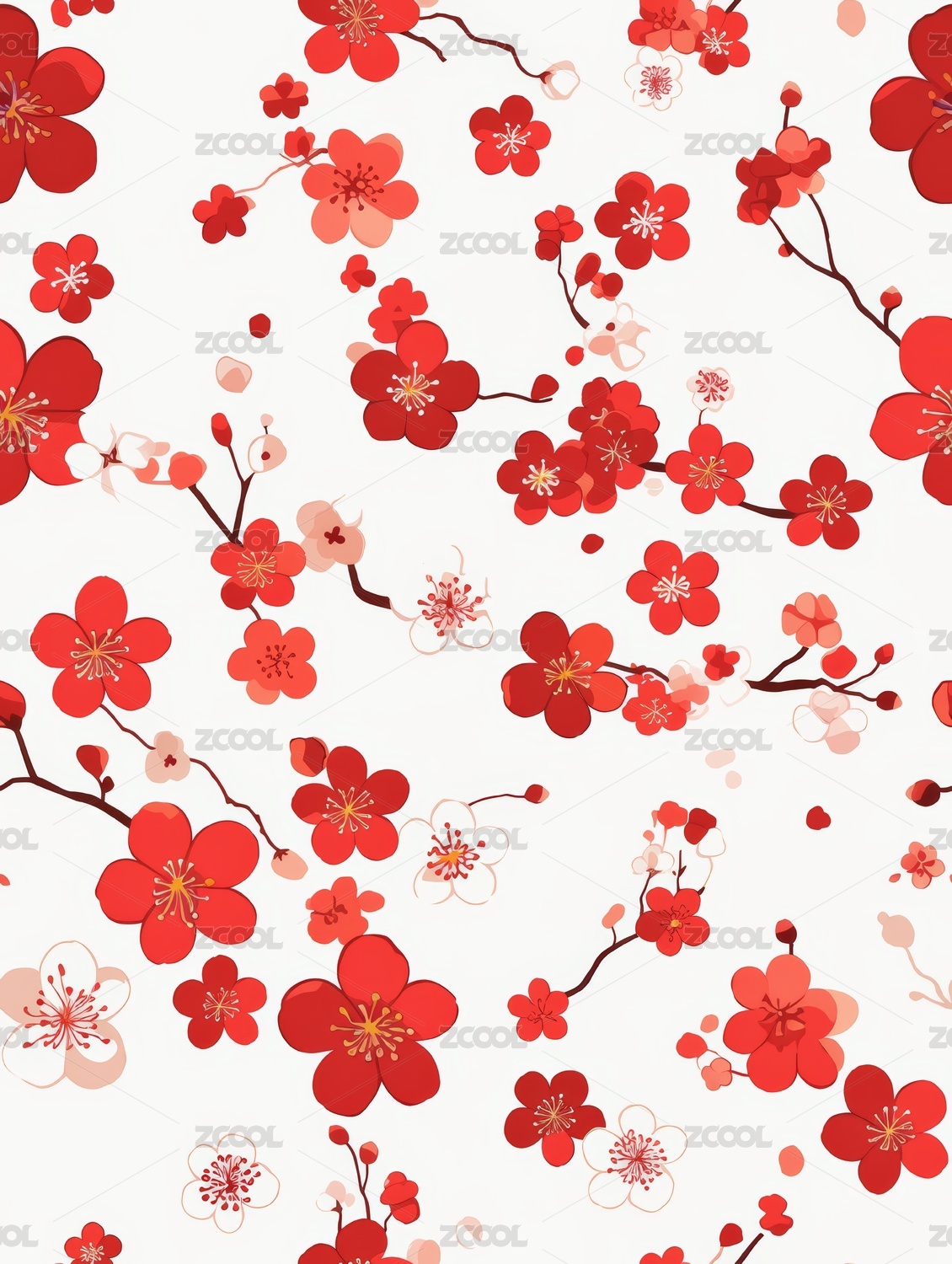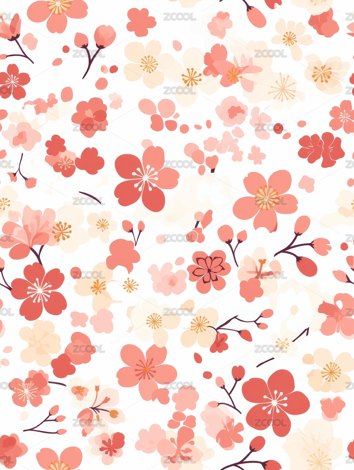 卡通图,图案,桃花,布料,印花,背景,插画,叶子