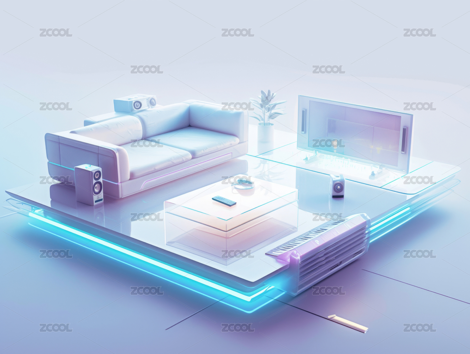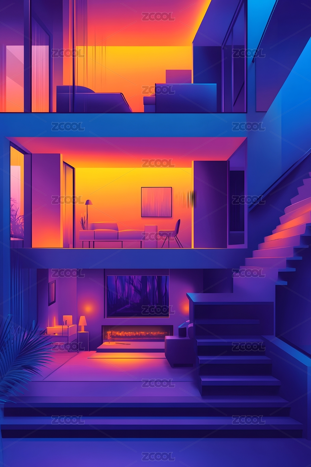 未来感,科技,科幻,家居,客厅,公寓,厨房,迷你,场景,霓虹
