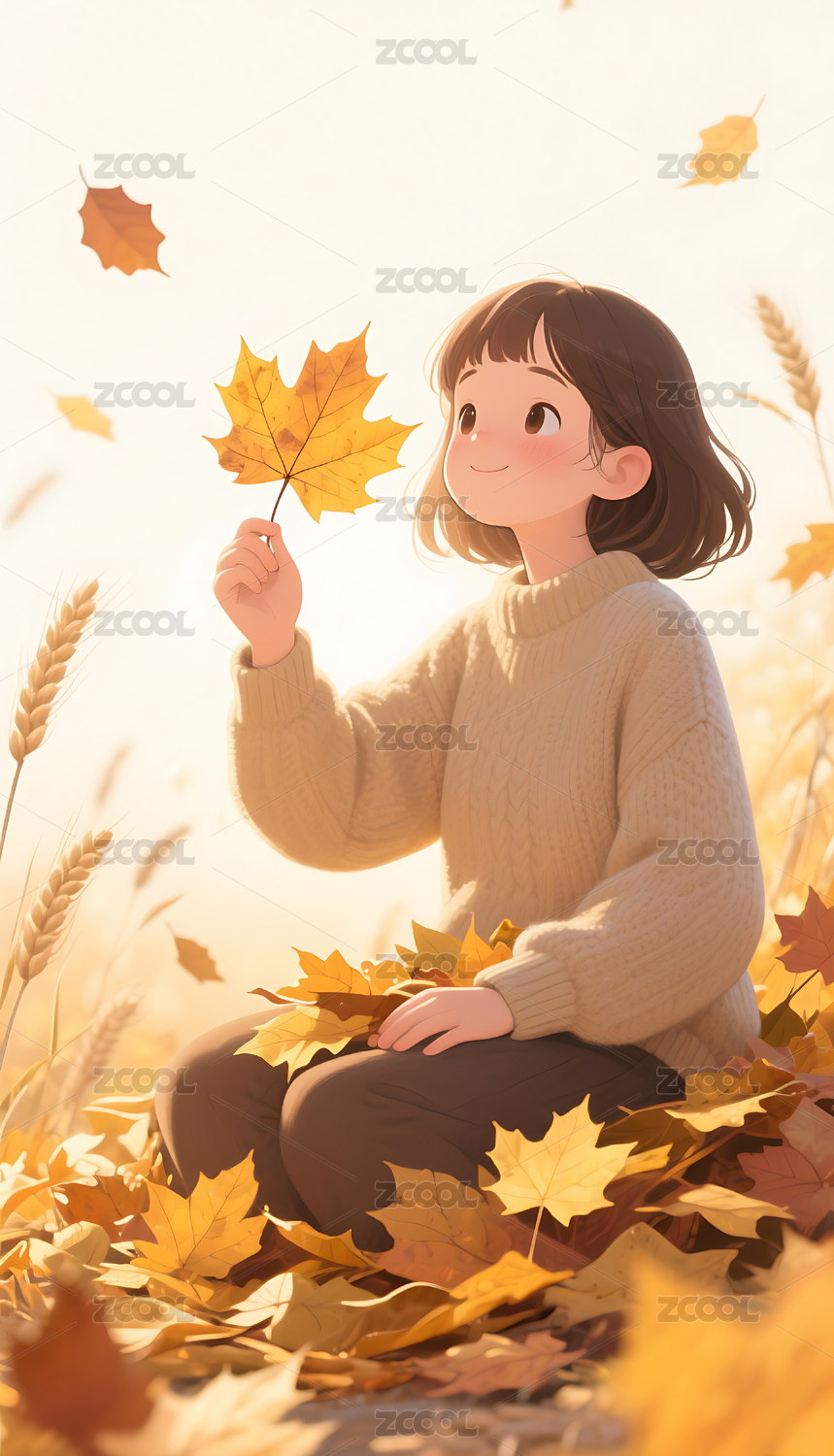 少女,人,秋季,秋天,插画,风景,风光,旅行,旅游,户外