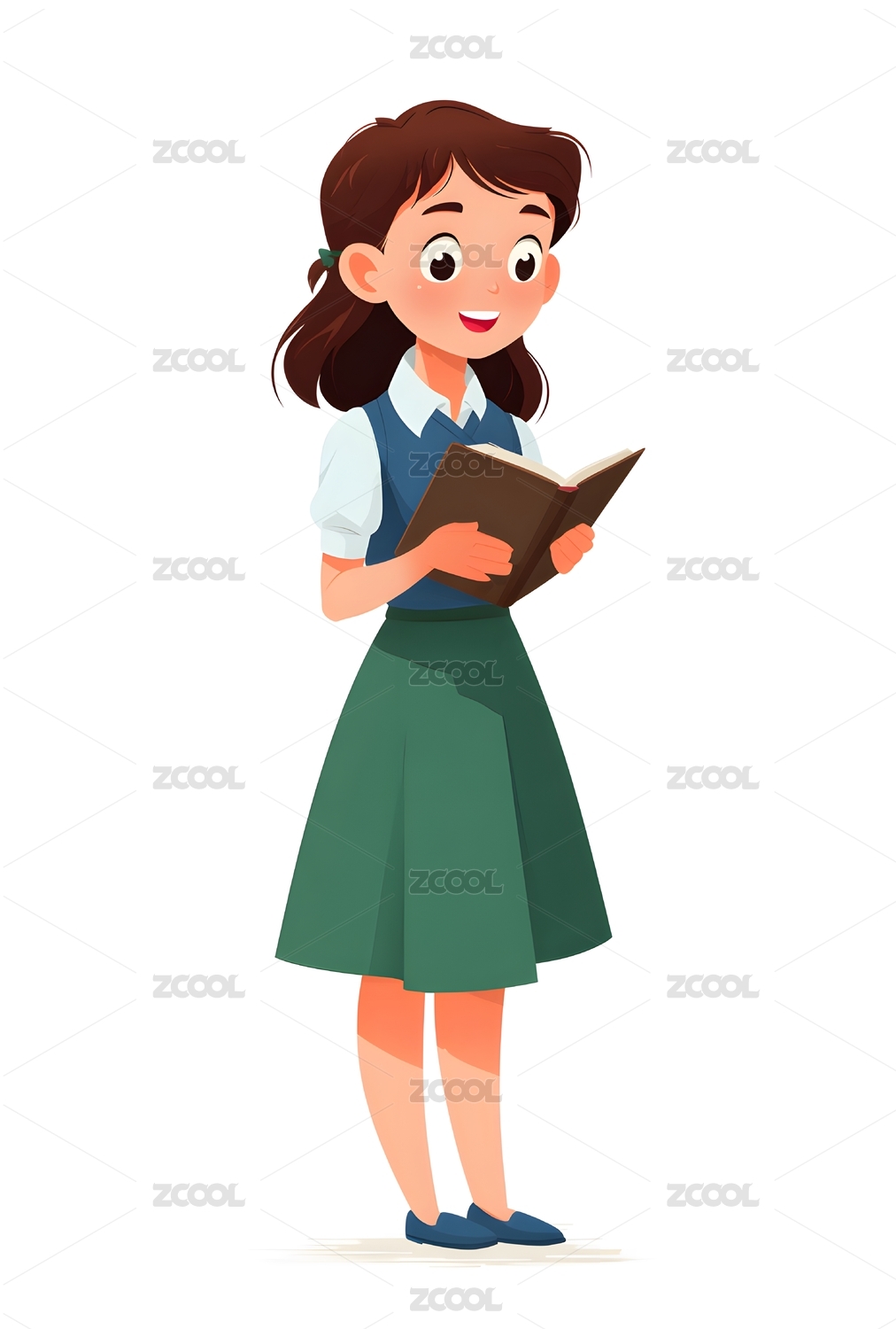 穿蓝色裙子的读书女孩人物