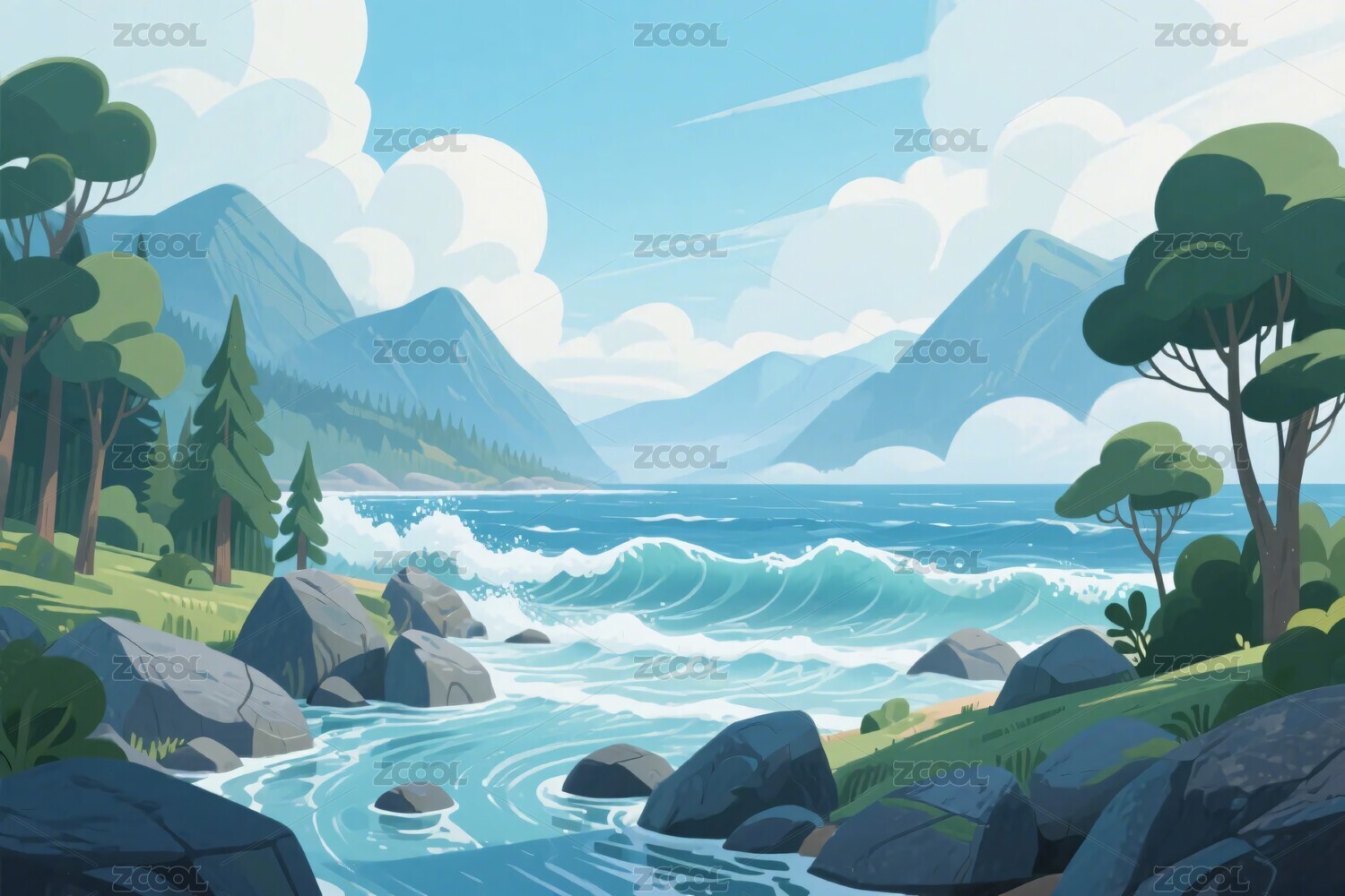 海边插画背景