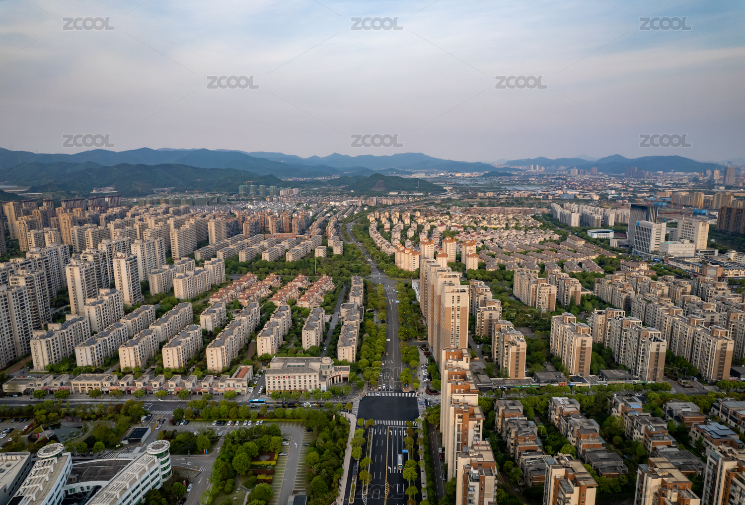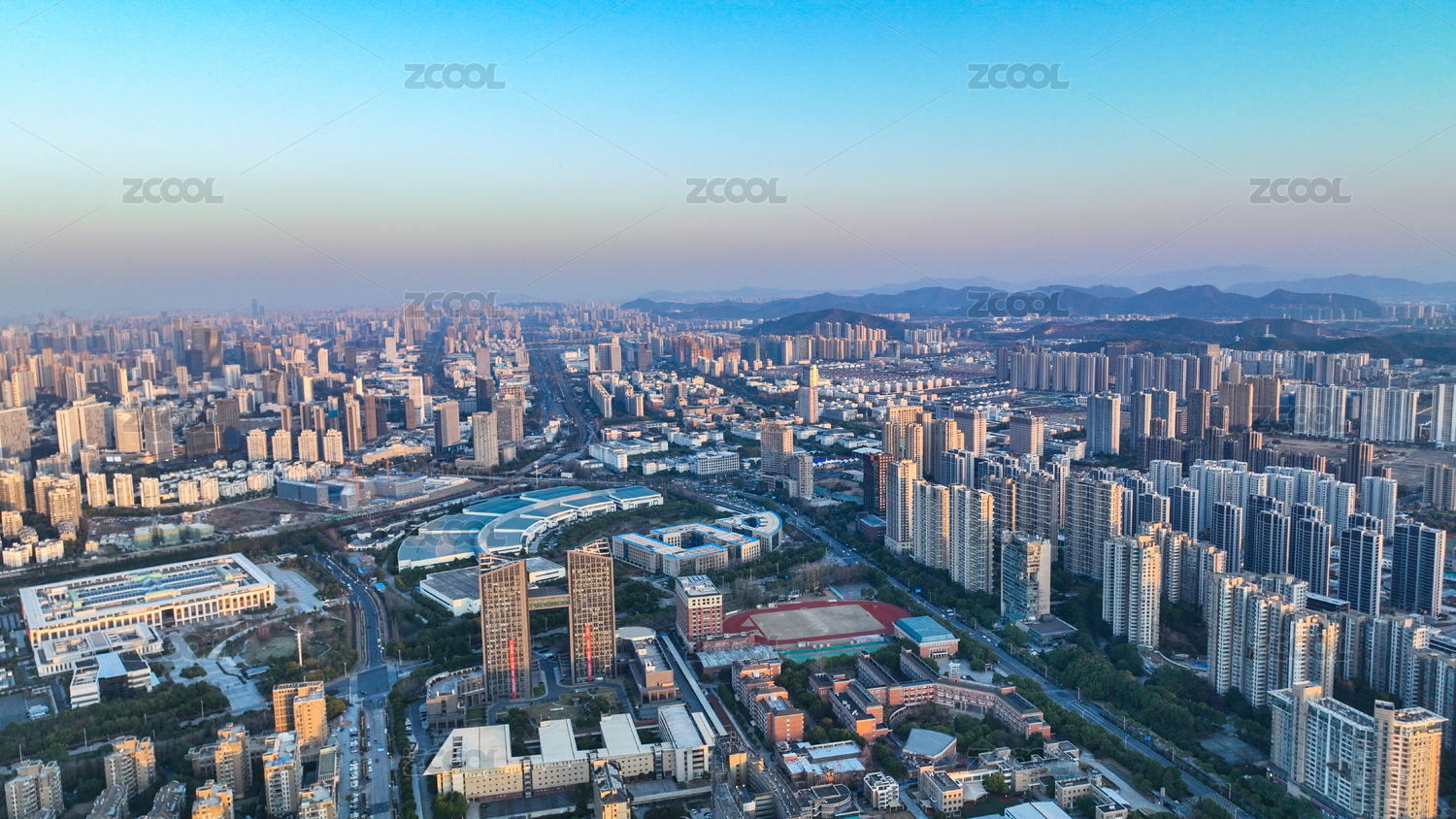 杭州,航拍,滨江区,蓝调,天空,蓝色,全景