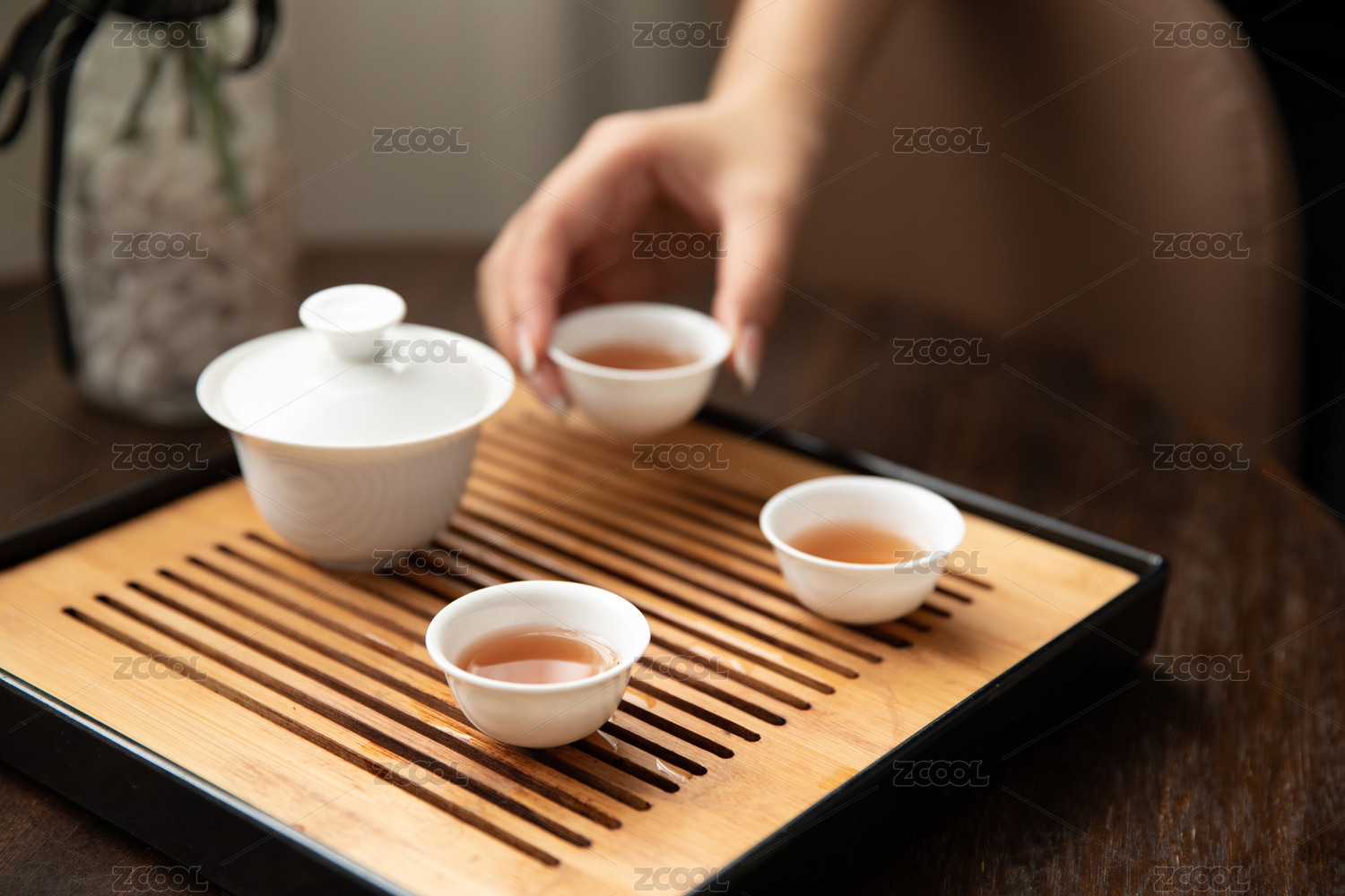 中国茶具,一个人在倒茶入茶杯,喝茶
