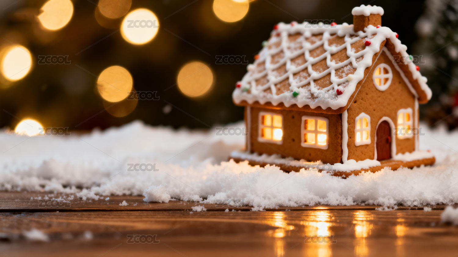 雪中的圣诞树圣诞房子和带口罩圣诞节