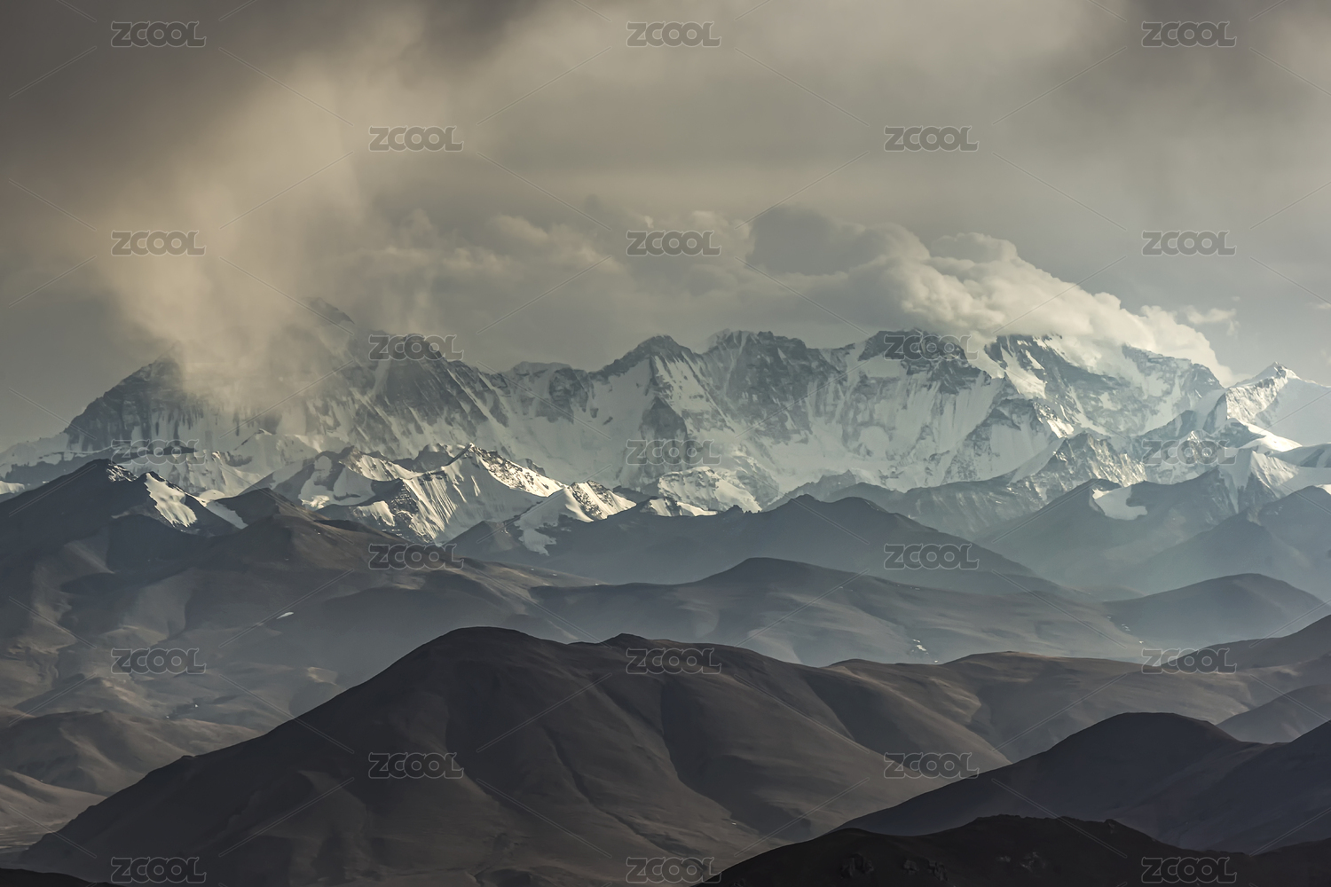 中国西藏日喀则定日县珠峰景区卓奥友峰日落