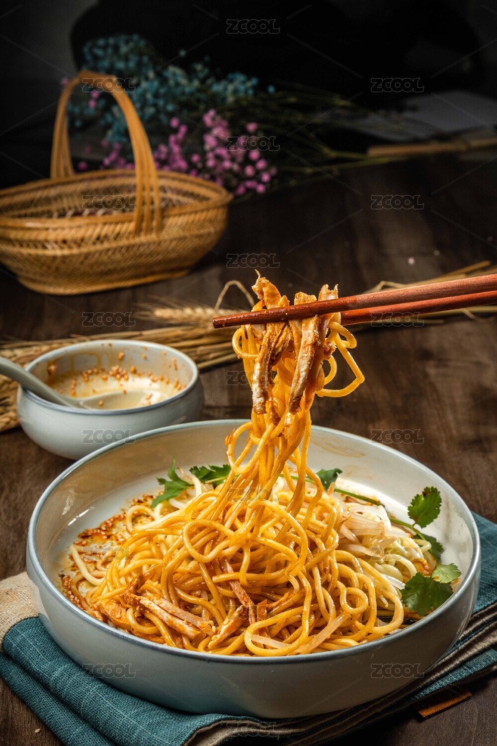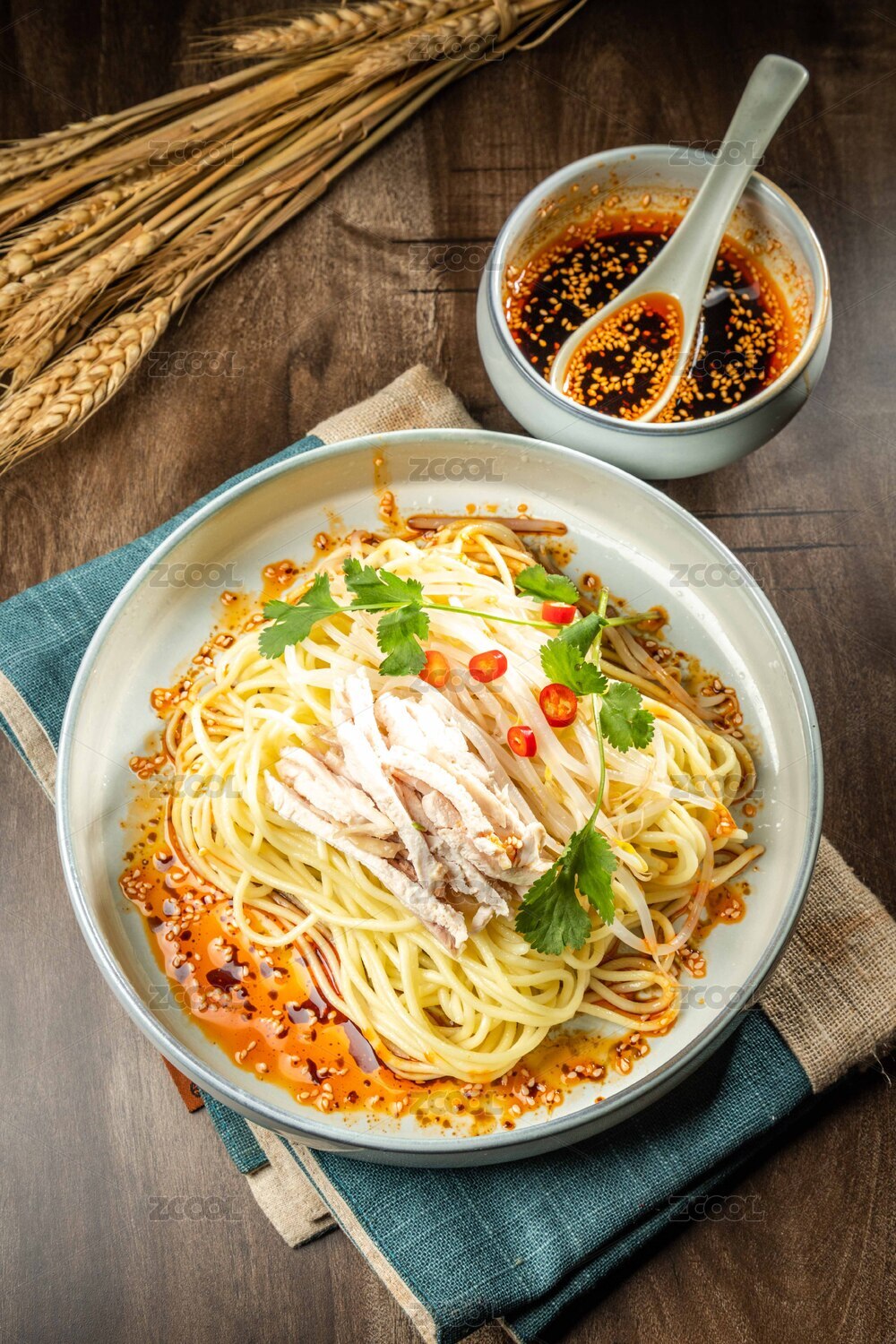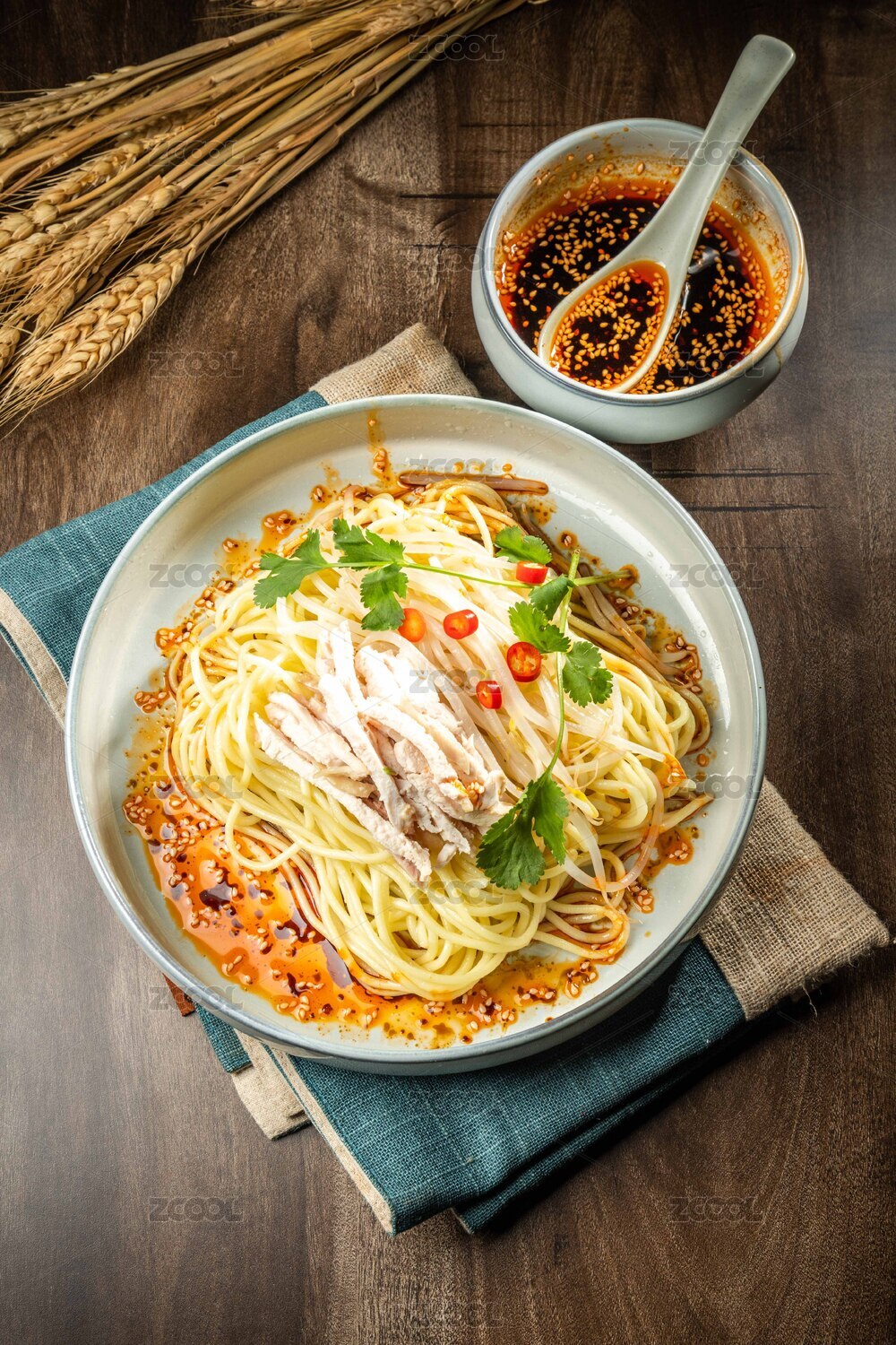 青花瓷碗里的小吃麻辣凉面重庆凉面拌面