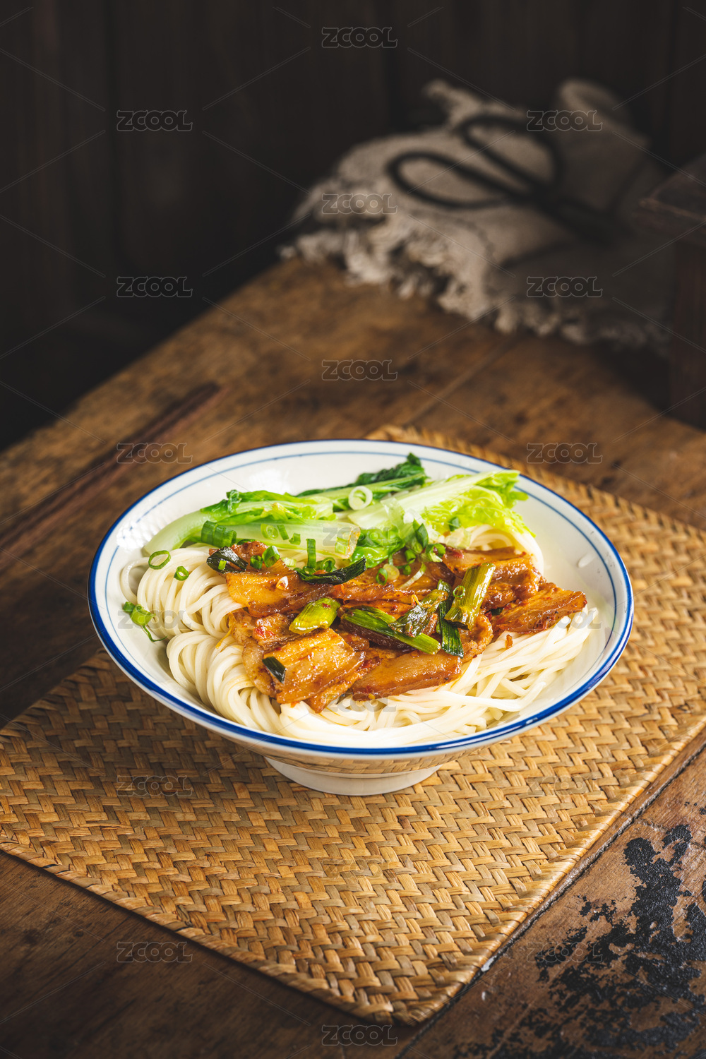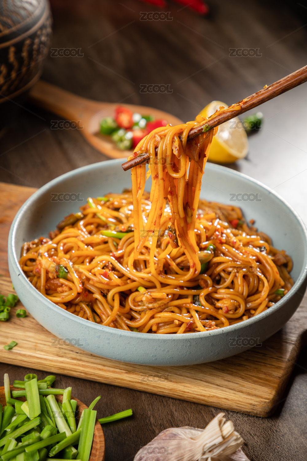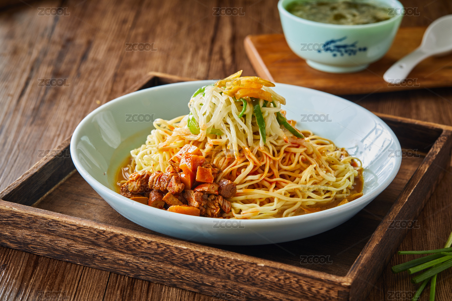 青花瓷碗里的小吃麻辣凉面重庆凉面拌面