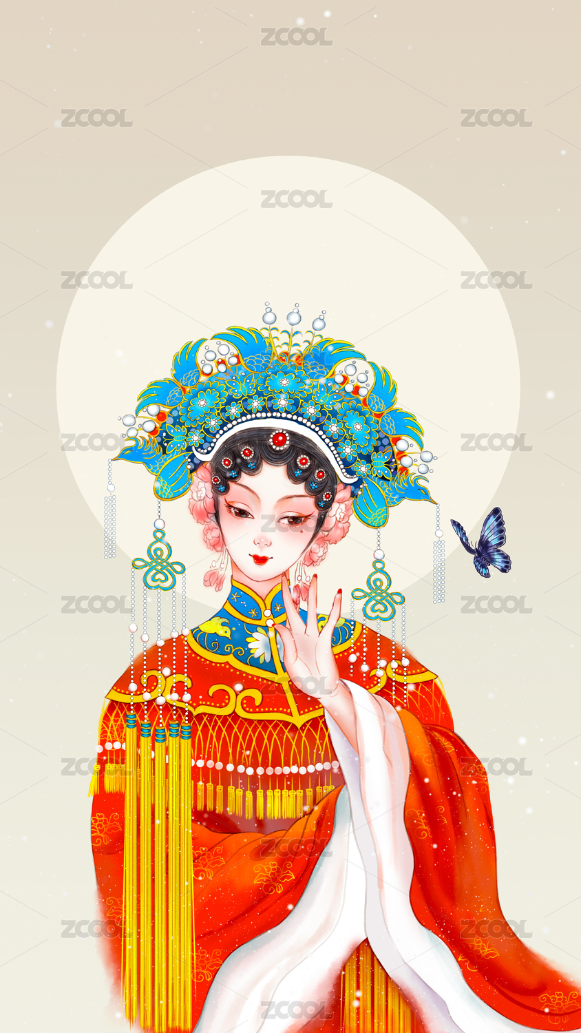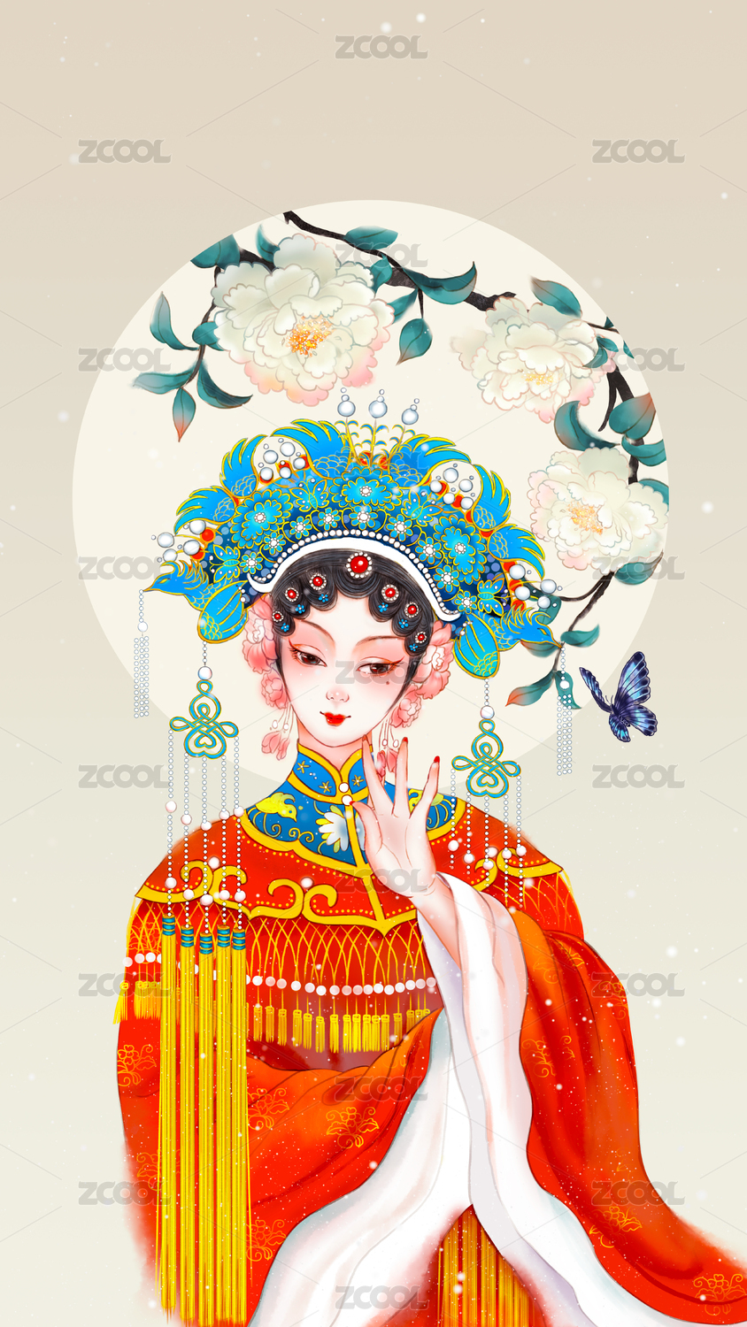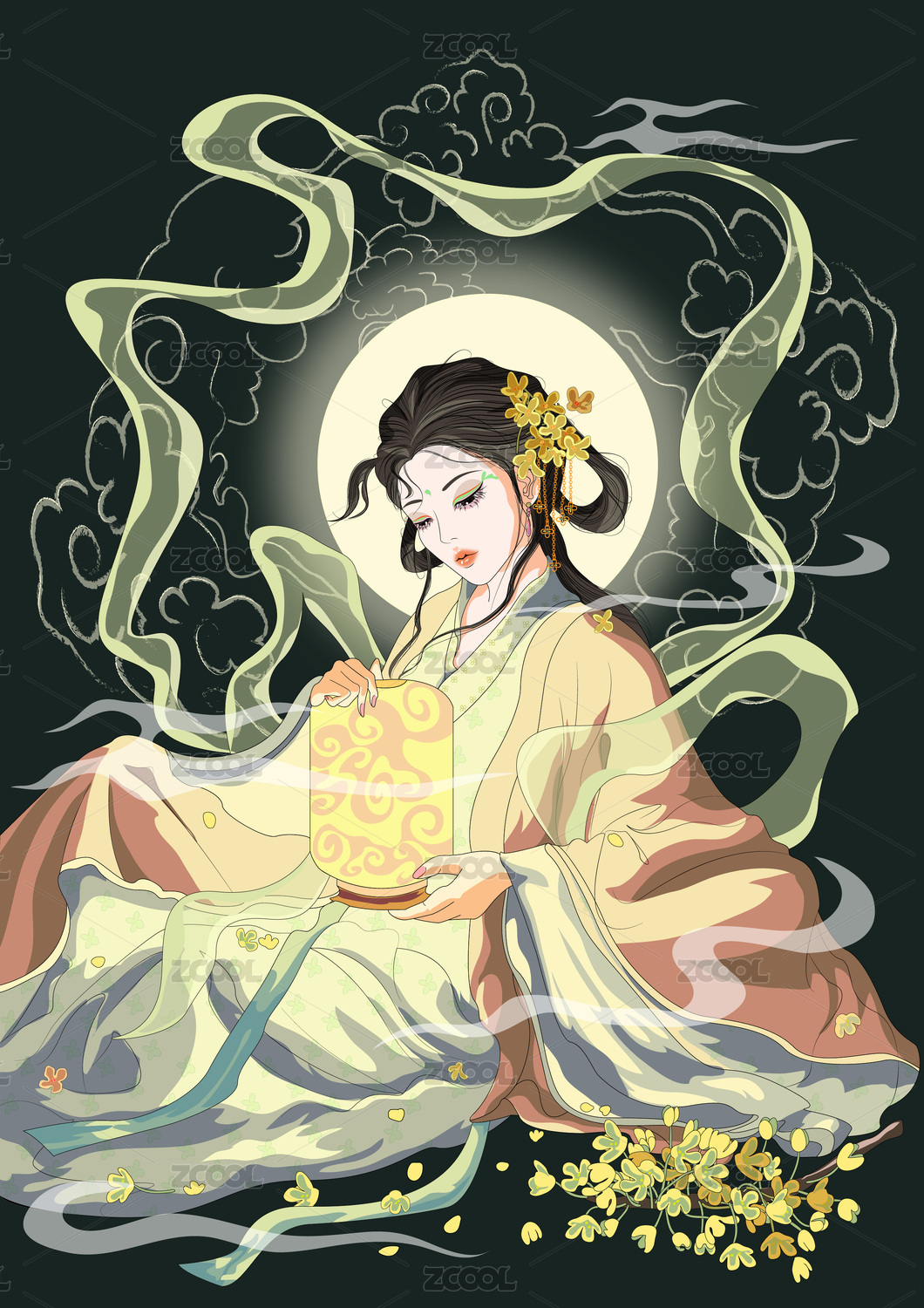 牡丹,白牡丹,古风,美女,花神,插画,女生,拟人,春季,月亮