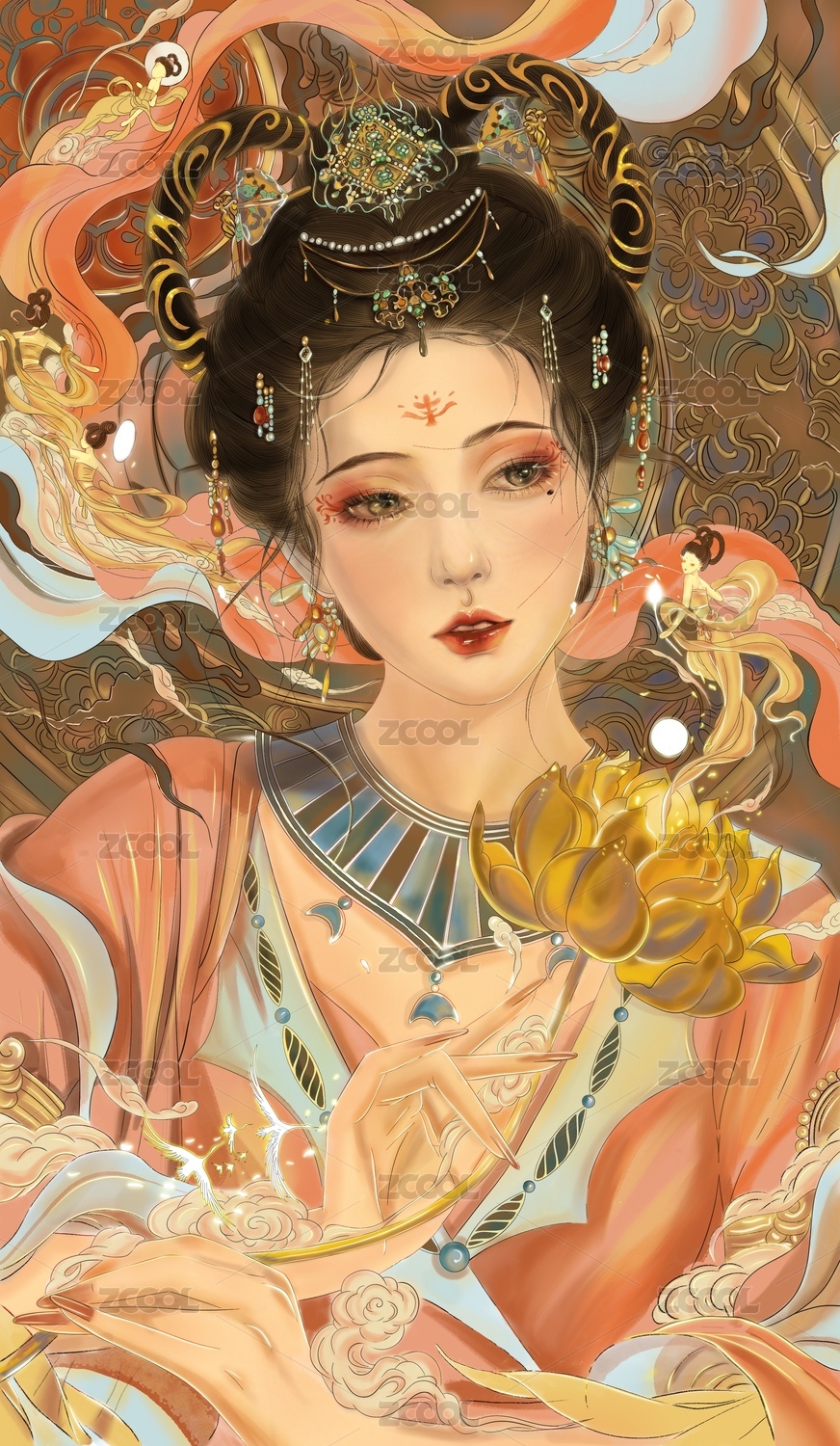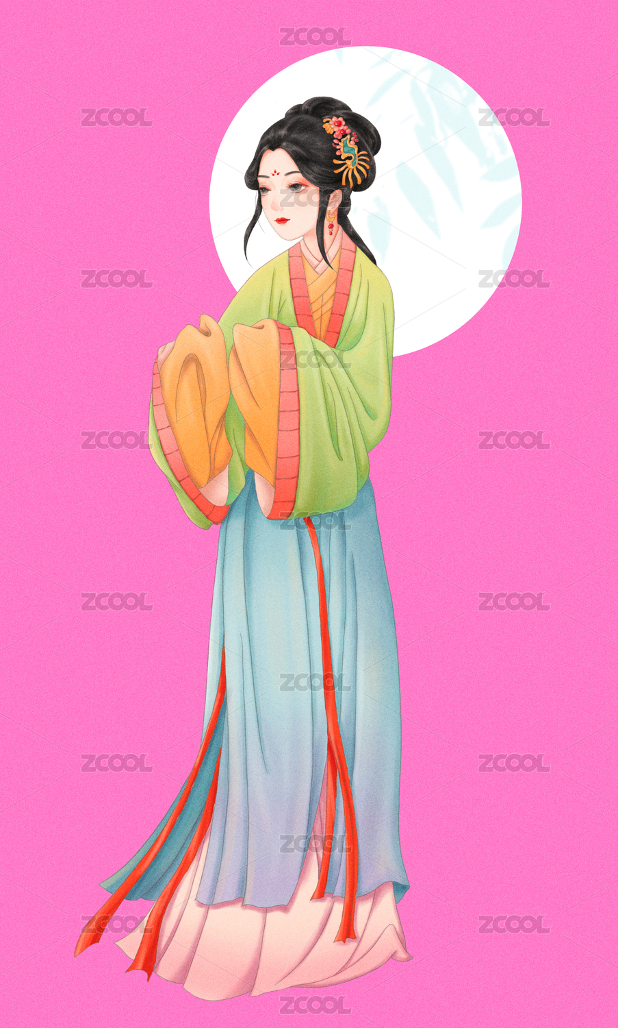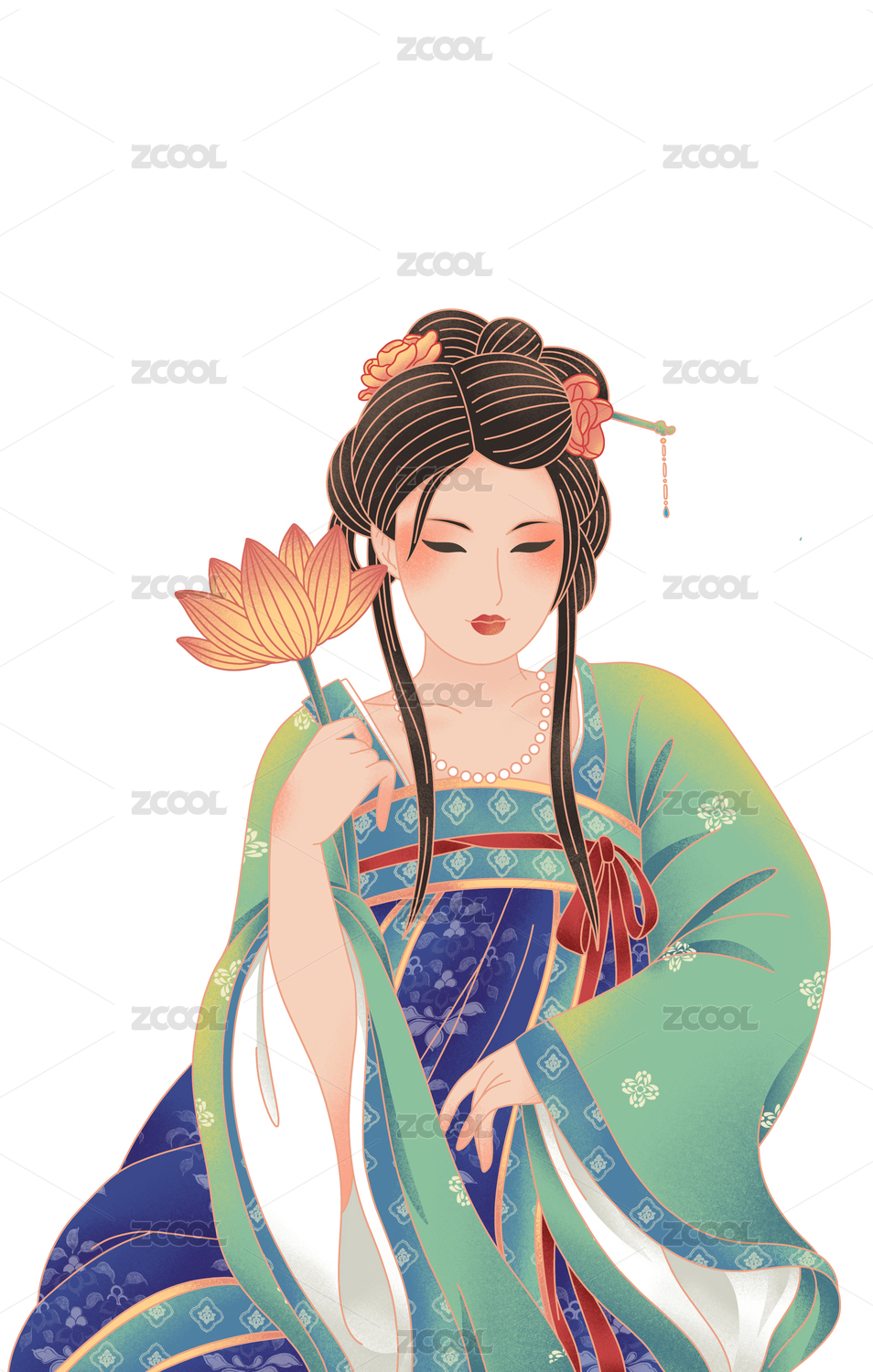 古风国潮汉服美女节日节气花朵荷梅水仙牡丹