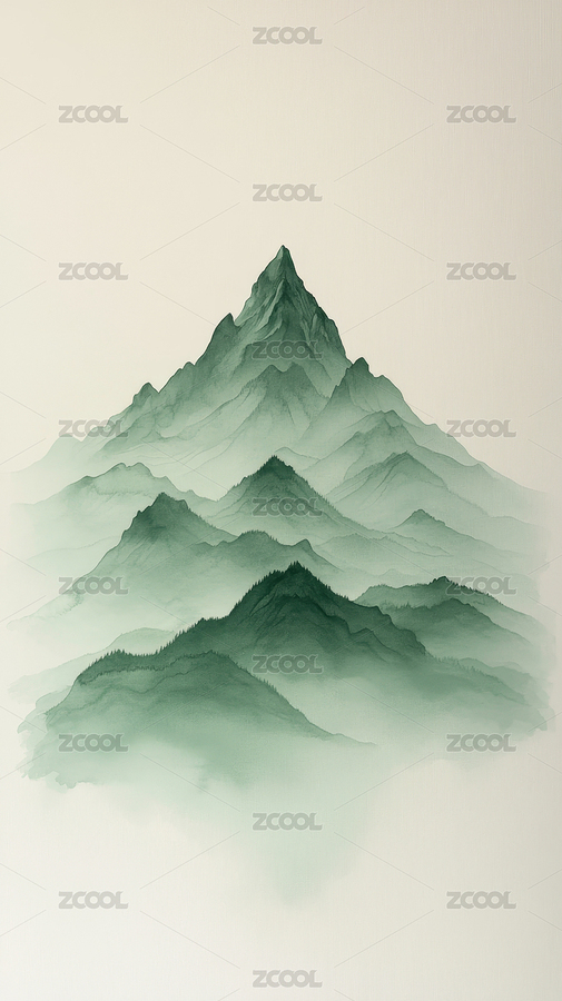 山峰,和谐,雾,画布,墨绿,墨水,留白,中央