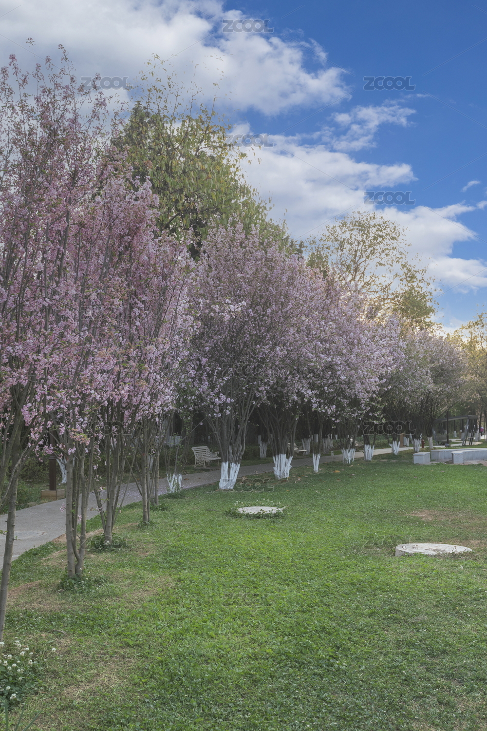 春天,垂丝海棠,休闲步道,大观公园,云南,昆明,园林景观,盛开,户外,无人