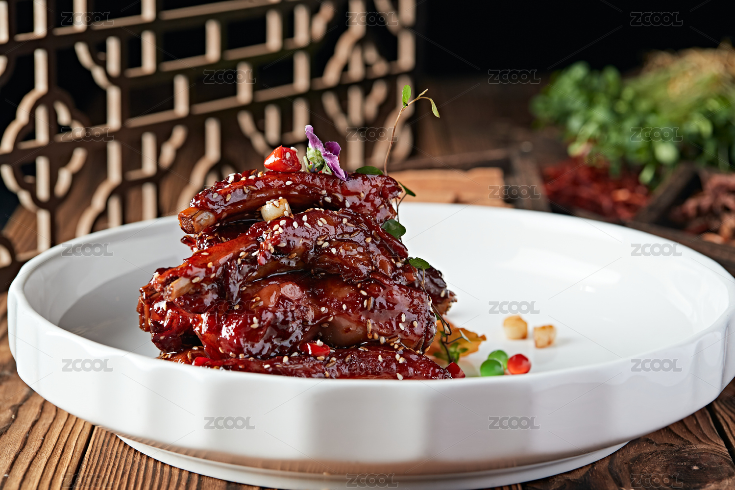 白盘子里的红烧排骨糖醋话梅小排骨