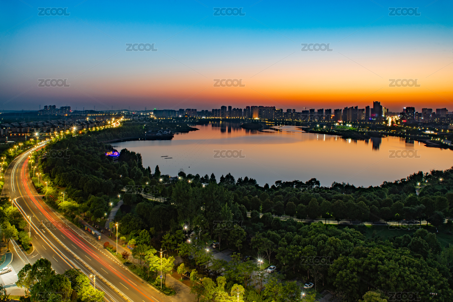 城市公园夜景-长沙西湖公园